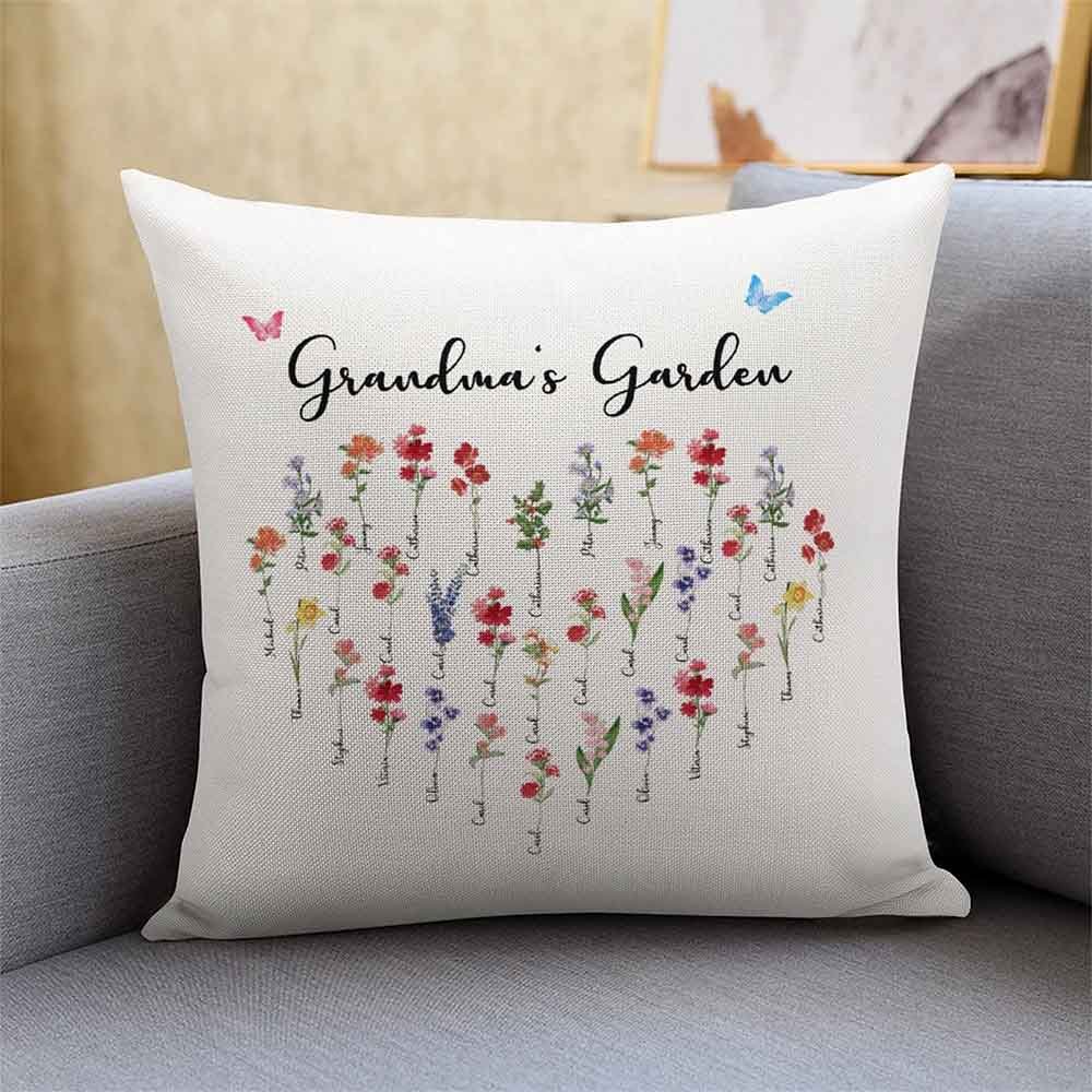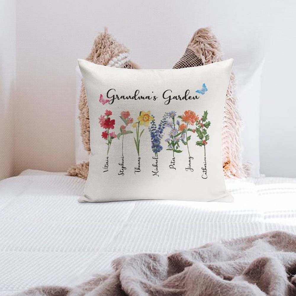 Taie d'Oreiller Personnalisée avec Nom et Fleur de Naissance Cadeau de Famille pour Grand-mère Mère