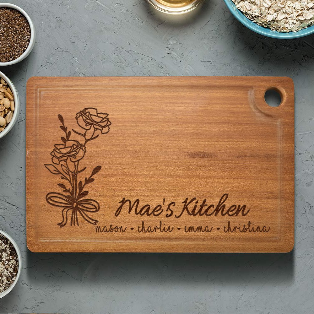 Chaque fleur de naissance a une signification particulière et est censée symboliser les caractéristiques des personnes nées au cours de ce mois spécifique. Personnaliser une planche à découper unique avec la fleur de naissance de la maman et les noms des membres de la famille est un cadeau surprenant et touchant.