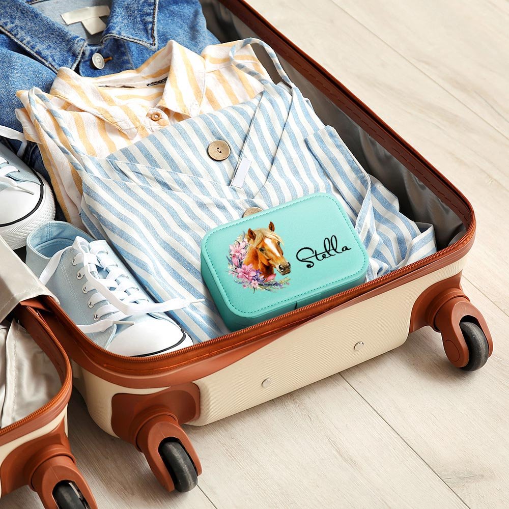 Notre boîte à bijoux est incroyablement compacte et légère, parfaite pour les voyages ou les sorties. Que vous partiez en vacances ou que vous vous rendiez au ranch, cette boîte se glisse facilement dans n'importe quel sac ou valise et vous permet de vous mettre en valeur.
