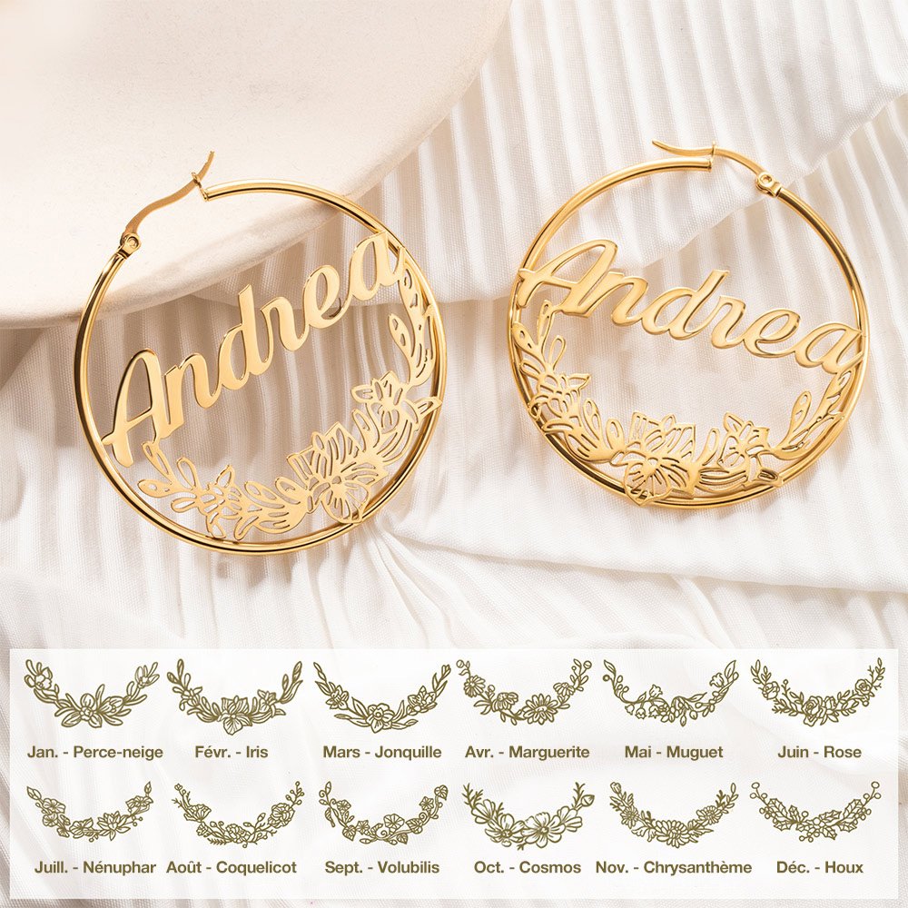 Ces boucles d'oreilles se distinguent par la possibilité d'ajouter un nom ou une initiale, créant ainsi un bijou véritablement personnalisé. La police élégante utilisée pour la personnalisation ajoute de la sophistication, rendant ces boucles d'oreilles adaptées à toutes les occasions.