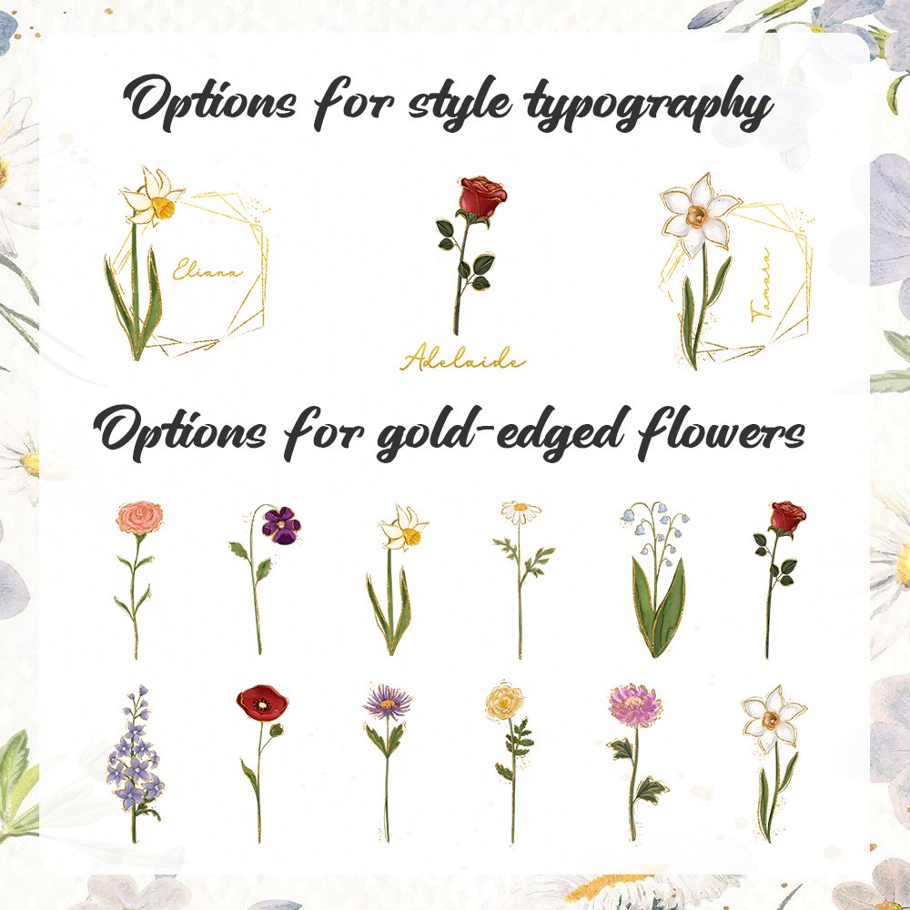Personnalisez votre boîte à bijoux préférée avec votre nom et une belle fleur de naissance pour mettre en valeur vos caractéristiques. Le choix de quatre couleurs à la mode (rose, blanc, vert et noir) répond à vos besoins esthétiques, faisant de chaque boîte à bijoux un objet d'exposition unique et personnalisé.