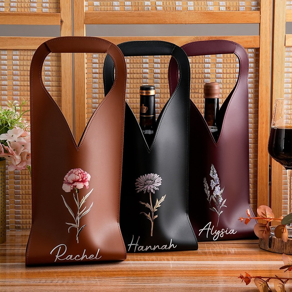 Ce sac à vin élégant est conçu pour les amateurs de vin qui allient élégance et praticité. Il arbore un magnifique motif de fleur de naissance et peut être personnalisé avec votre nom, en faisant un cadeau réfléchi et pratique pour vos amis, votre famille ou tout amateur de vin.