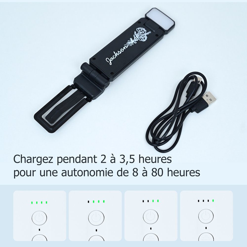 Avec un poids de seulement 50 g, la conception ultra-légère, associée à une pince à signet rotative à 180 degrés en bas, se fixe en toute sécurité sur les livres, les Kindles, les partitions et les planches à dessin. La tête de la lampe permet une rotation horizontale de 360 degrés et un réglage vertical de 90 degrés. L'abat-jour antireflet en PC diffuse une lumière douce et homogène sans être éblouissante. Portable et facile à ranger, elle se glisse aisément dans un sac.