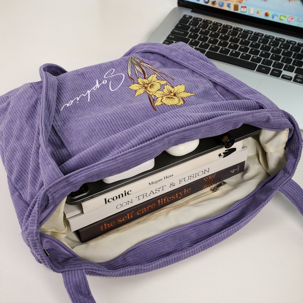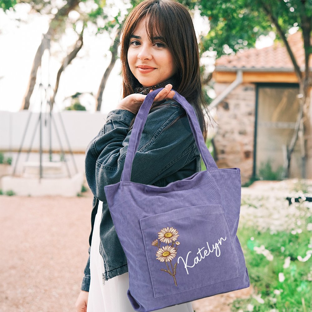 Idéal pour les anniversaires, les occasions spéciales et pour tous ceux qui apprécient le symbolisme botanique personnalisé. L'association de la texture du velours côtelé, du dessin de la fleur de naissance et de détails personnalisés crée un cadeau pratique et réfléchi.