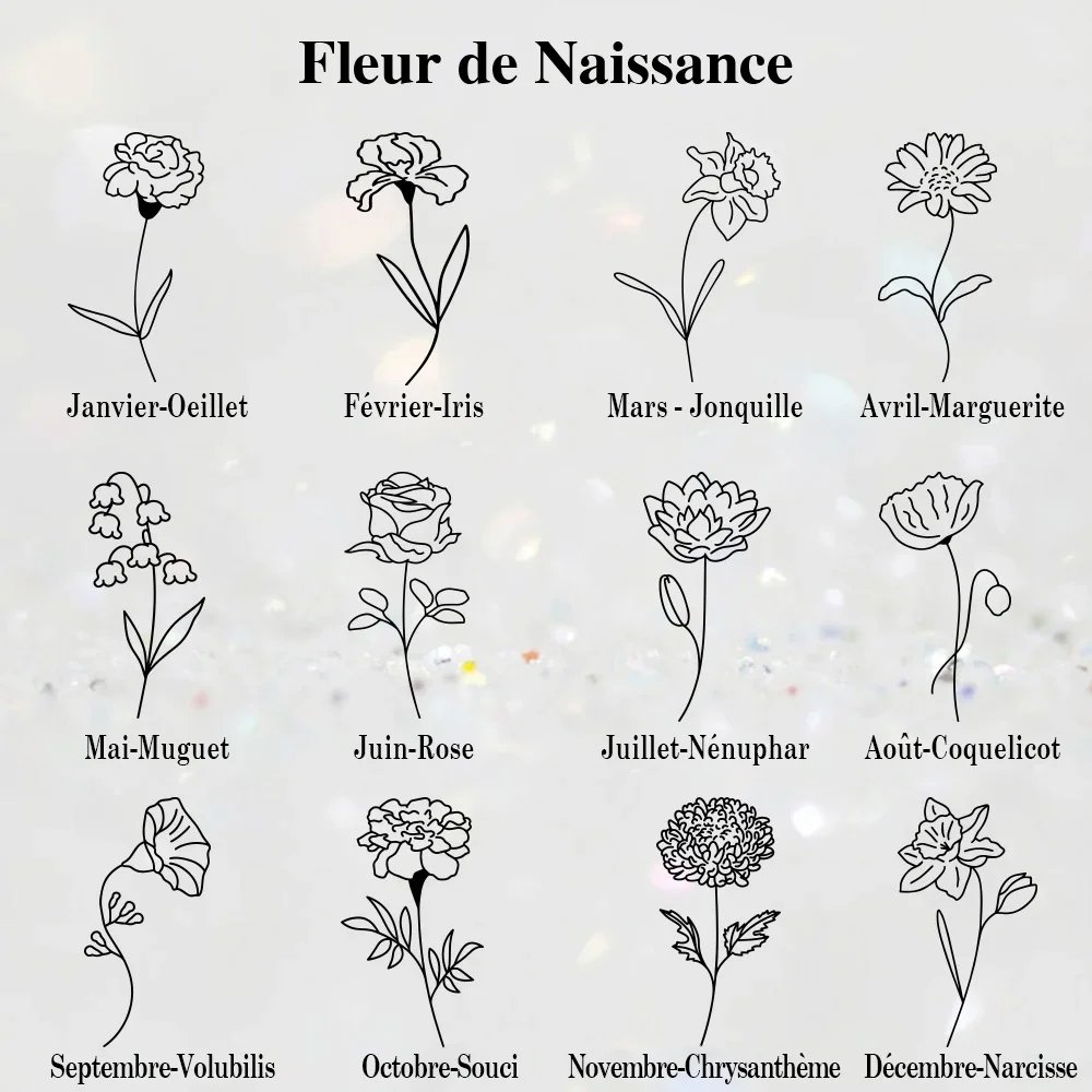 Laissez-vous séduire par l'élégance de ce collier orné de la fleur de naissance du destinataire. Le design complexe met en valeur la beauté et le symbolisme de la fleur spécifique liée au mois de naissance du destinataire. Ce détail significatif n'ajoute pas seulement une esthétique exquise mais encapsule également l'essence du mois de naissance du destinataire, ce qui en fait un précieux souvenir.