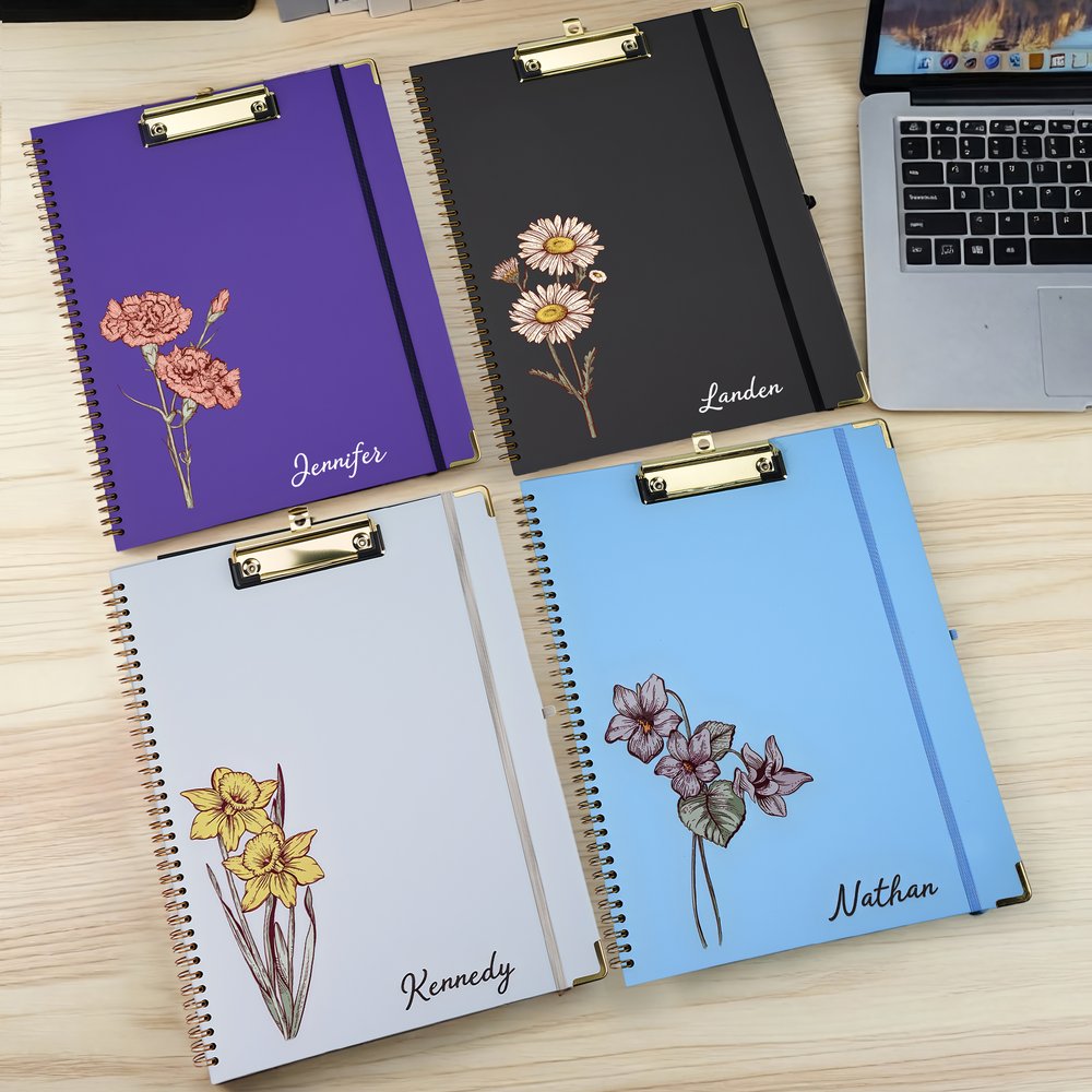Bloc-notes A4 personnalisé avec fleur de naissance Multicolore avec page intérieure en PP et bloc-notes Fournitures de bureau Cadeau d'anniversaire pour enseignant(e) étudiant(e) personnel de bureau