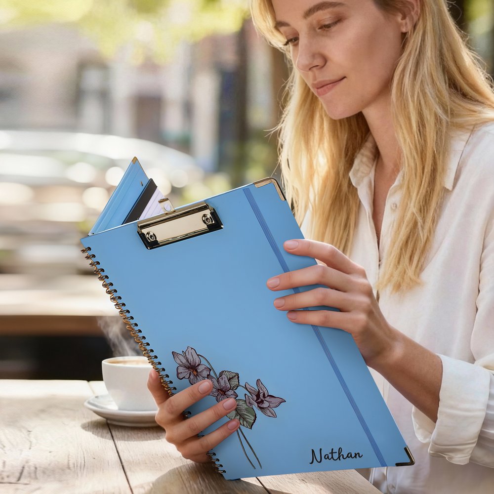 Fabriqué à partir d'un porte-bloc robuste, le design combine un extérieur lisse et vibrant avec des motifs floraux colorés et des pochettes de dossiers pratiques en PP, garantissant une protection des documents résistante aux déchirures. L'agrafe en métal doré permet de fixer durablement les documents, tandis que l'élastique et le passant pour stylo assurent une utilisation durable, en équilibrant le style et la résistance à l'usure quotidienne.