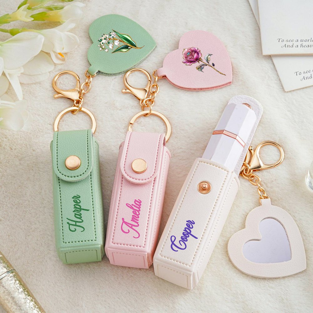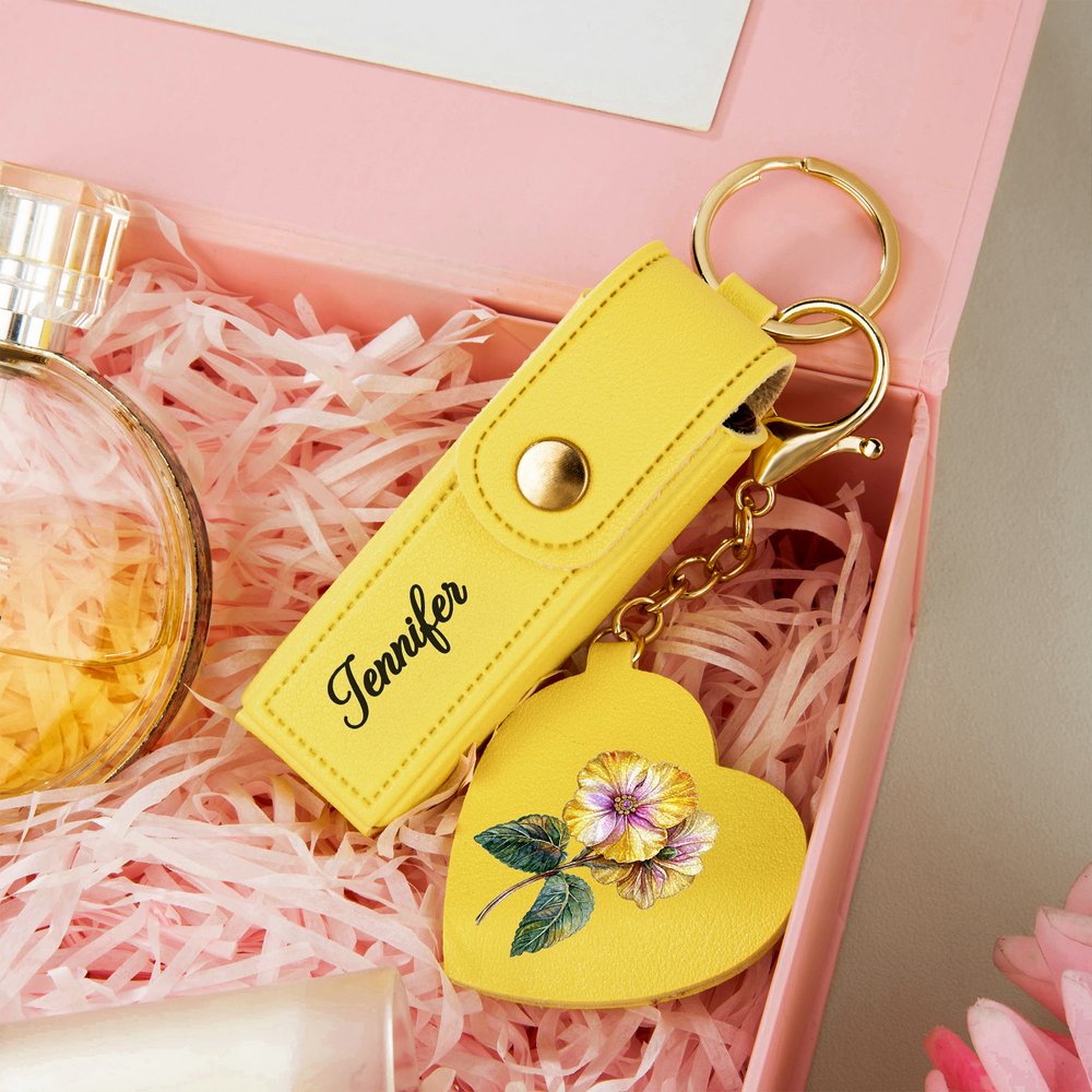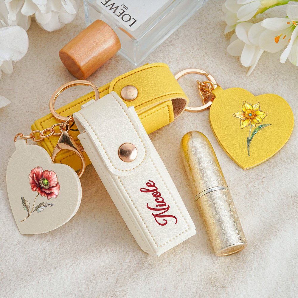 Ce délicat porte-clés en forme de sac à rouge à lèvres s'inspire de la beauté romantique des fleurs de naissance. Son design élégant est complété par un délicat miroir en forme de cœur, qui vous permet de retoucher votre look et de rayonner de confiance à tout moment et en tout lieu. Il peut être personnalisé avec un nom, créant ainsi un accessoire de mode portable qui vous est propre et qui transforme les retouches quotidiennes en un moment de grâce.