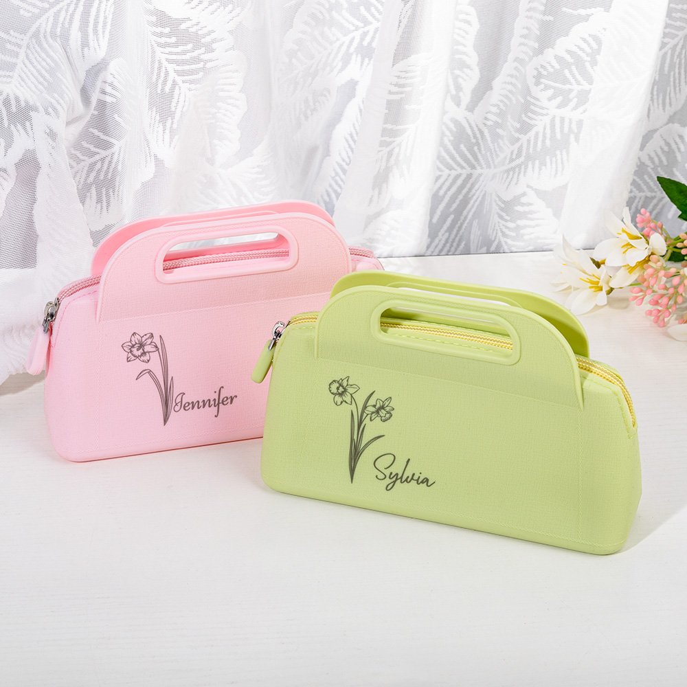 Rendez ce sac à main vraiment unique en y ajoutant une touche personnalisée avec un motif de fleur de naissance et le nom du destinataire. Chaque fleur de naissance représente un mois spécifique, ajoutant un élément personnel et significatif au sac.