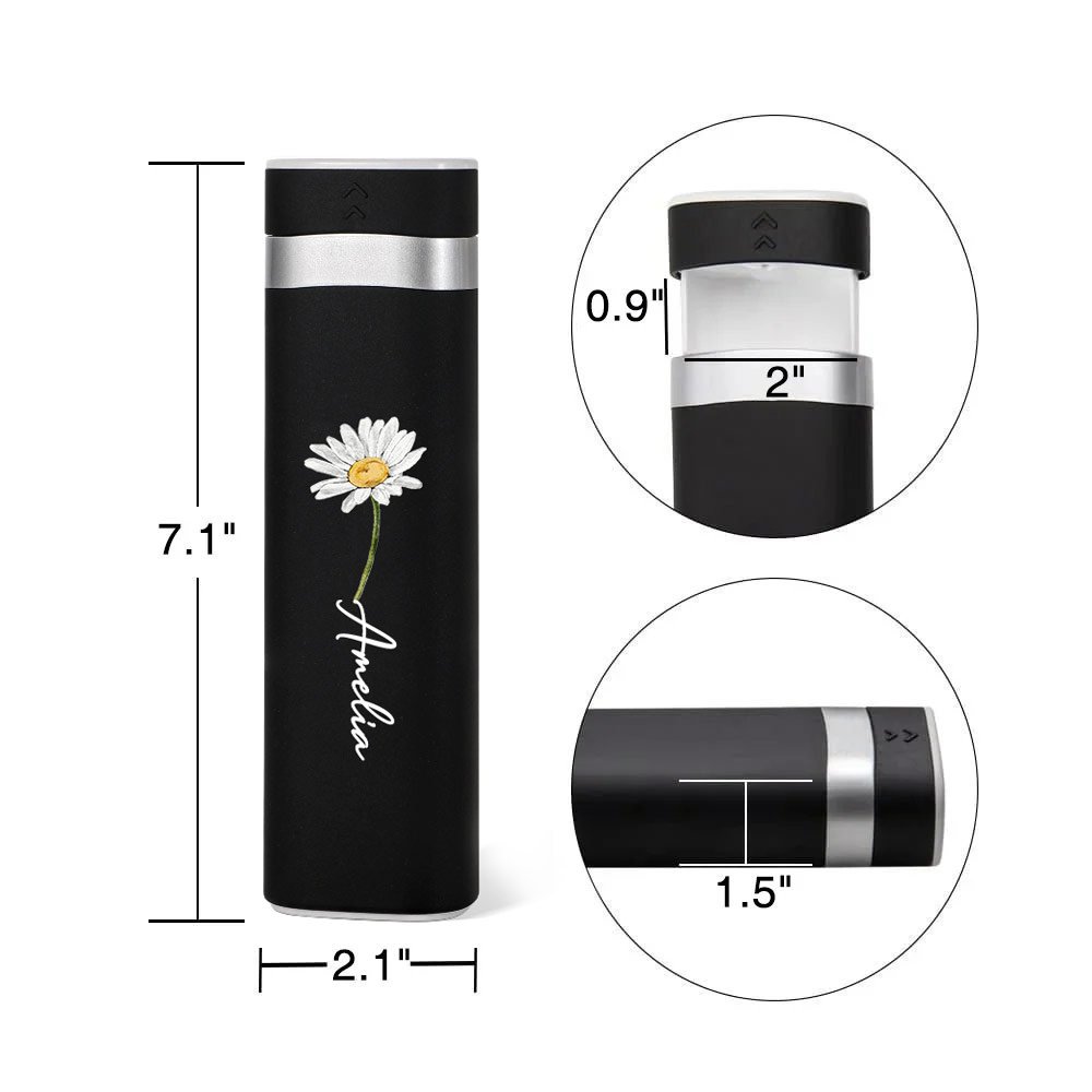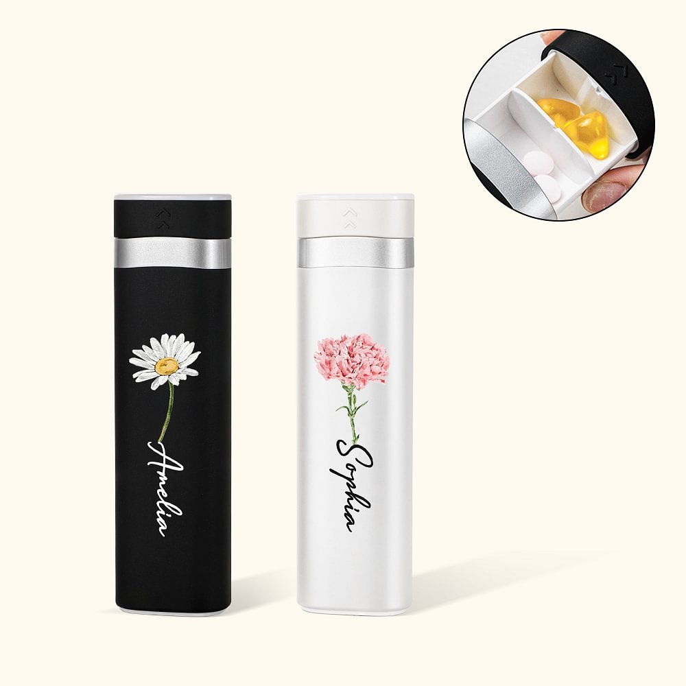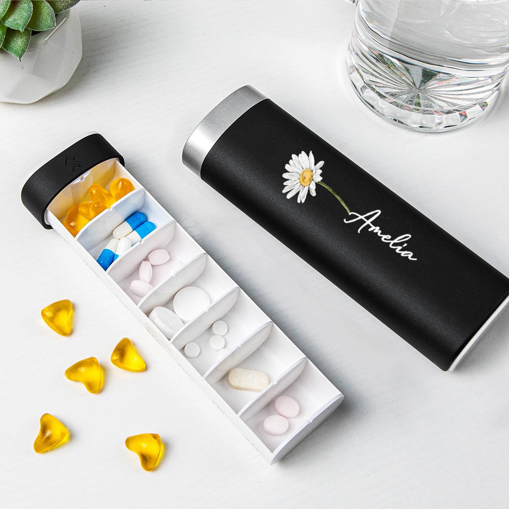 L'étui du pilulier peut être personnalisé avec un nom et une fleur de naissance, ce qui permet de l'identifier facilement. Ce pilulier innovant est non seulement fonctionnel mais aussi élégant, ce qui en fait l'accessoire parfait pour tous ceux qui ont besoin de suivre leur consommation quotidienne de médicaments ou de compléments alimentaires. De plus, la touche personnalisée de la fleur de naissance ajoute un élément élégant et sentimental aux doses de chaque jour.
