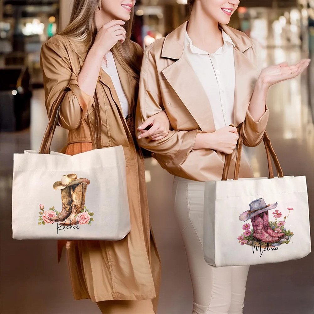 Combinant des bottes et des motifs de fleurs de naissance, ce sac fourre-tout en toile unique combine parfaitement le style occidental et la beauté naturelle et ajoute un sens de la mode et de la vitalité. Vous pouvez personnaliser votre nom sur le sac pour en faire un objet unique et personnel.