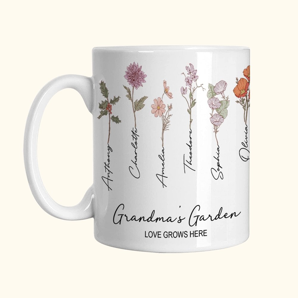 Tasse en Céramique Personnalisée avec 1à 15 Fleurs de Naissance et Nom Cadeau d'Anniversaire Fête des Mères pour Mère Grand-Mère