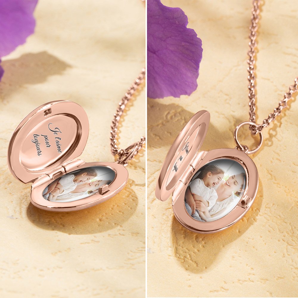 Il s'agit d'un petit collier ovale avec une fleur de naissance gravée au laser, si élégant, joli et étincelant ! La fleur de naissance symbolise votre mois de naissance et chaque fleur est unique. Vous pouvez personnaliser 1-4 fleurs de naissance selon vos besoins, ce qui est très exquis. L'intérieur est incrusté d'une photo colorée de votre être cher, pour des souvenirs inoubliables et des moments heureux qui dureront toujours.