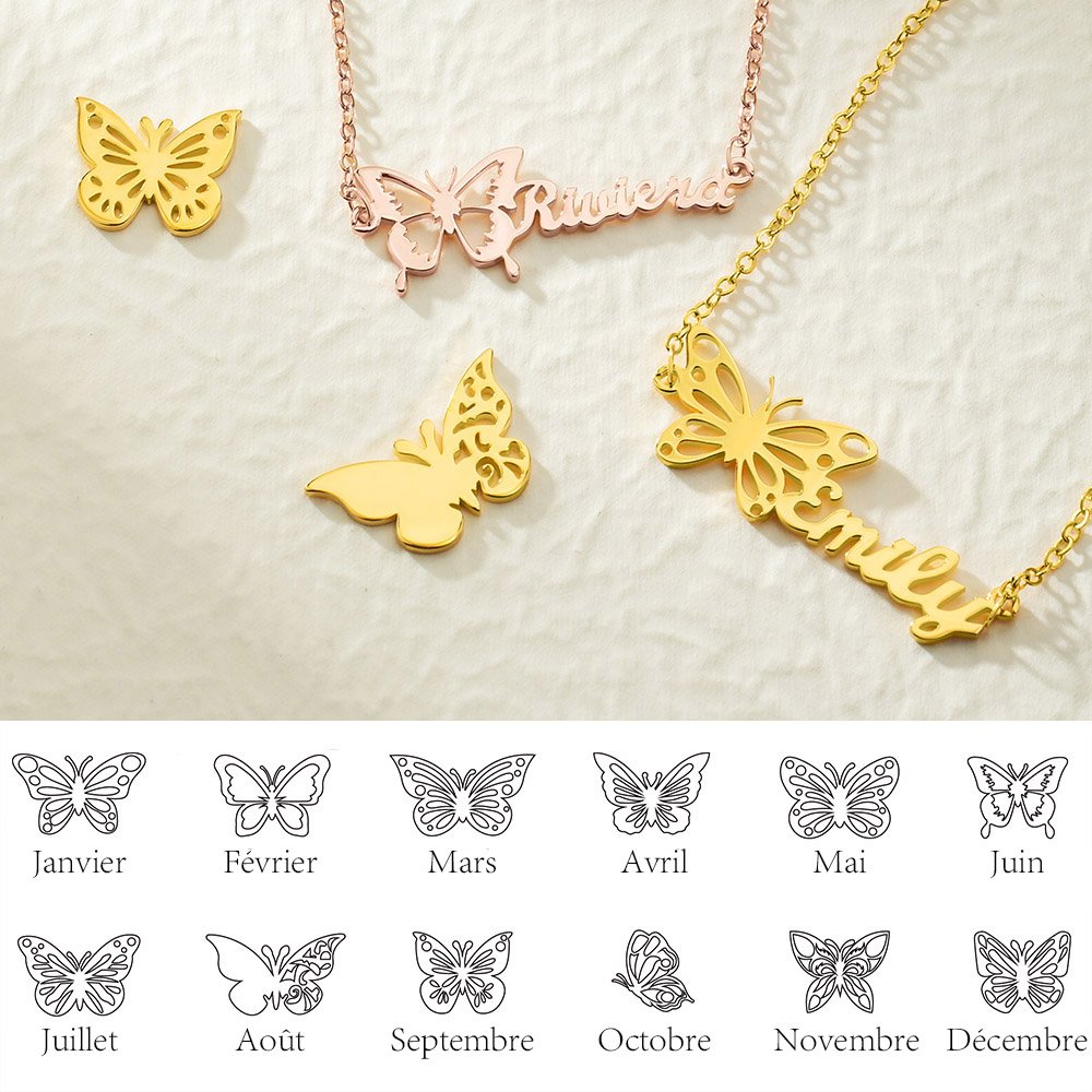 Le papillon symbolise la liberté et la beauté, et est appelé la "fleur volante". La fusion du collier papillon et du collier nom crée un collier unique et personnalisé. Ce collier papillon ajoute un style élégant aux femmes.