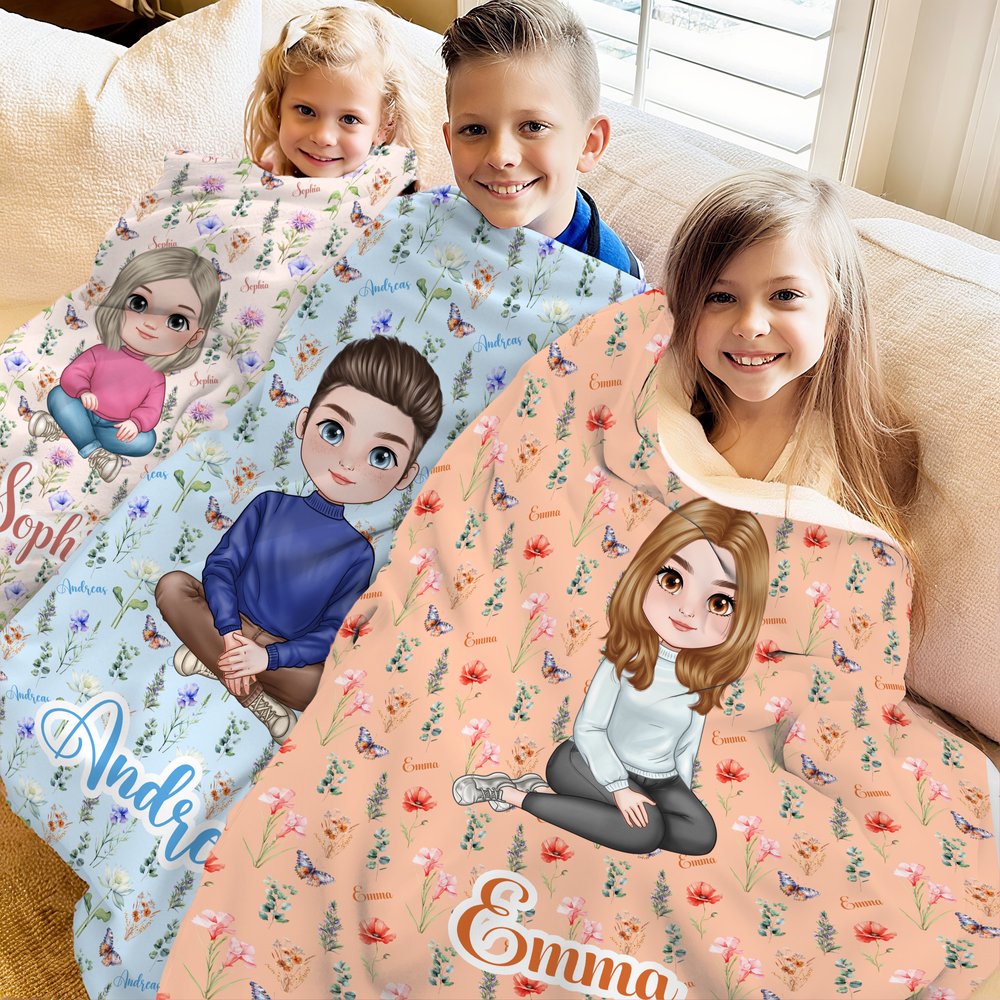 Couverture Personnalisée avec Nom Fleur de Naissance et Personnage de Dessin Animé Décoration d'Intérieur Cadeau Anniversaire pour Famille Amis