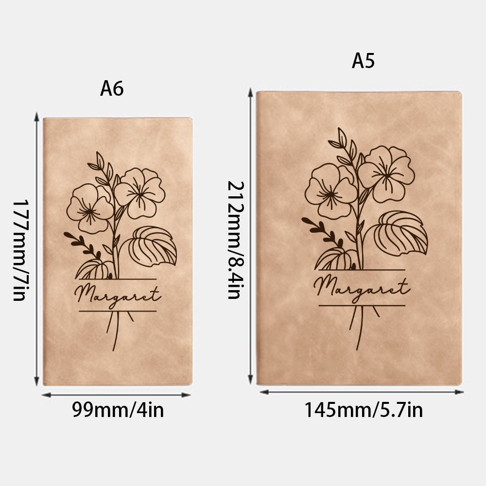 Ce carnet en cuir exquis présente une couverture ornée d'un motif de fleur de naissance adapté au mois de naissance du destinataire. L'impression florale magnifiquement rendue ajoute une touche personnelle et un sens de la beauté de la nature au carnet. Cette couverture unique rend le carnet visuellement attrayant et crée un lien significatif entre l'utilisateur et son journal.