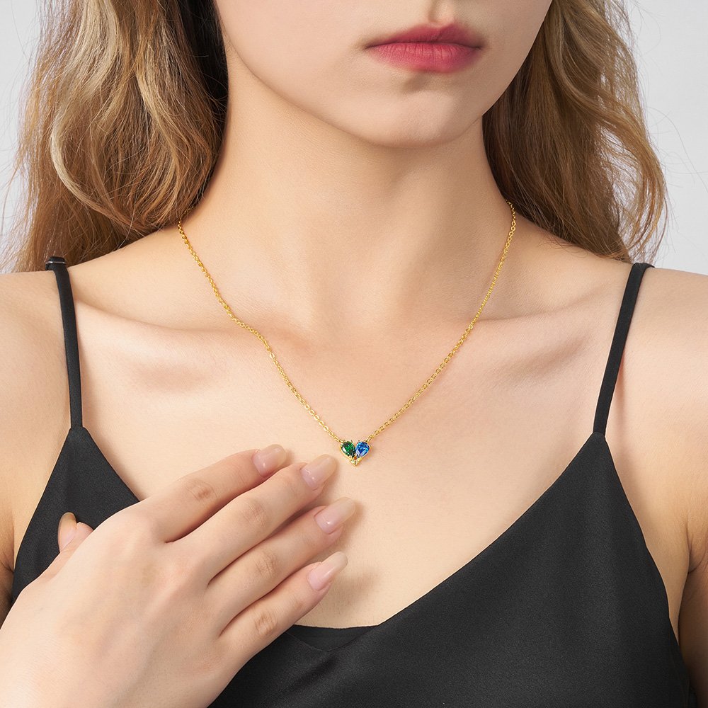 Conçu avec deux pierres de naissance différentes, ce collier délicat peut être personnalisé en fonction des mois de naissance de deux personnes uniques. Le mélange magistral de ces pierres crée une pièce visuellement éblouissante qui symbolise le lien unique entre partenaires, amis ou membres d'une même famille. Chaque collier raconte une histoire personnelle grâce à l'association unique de pierres précieuses.