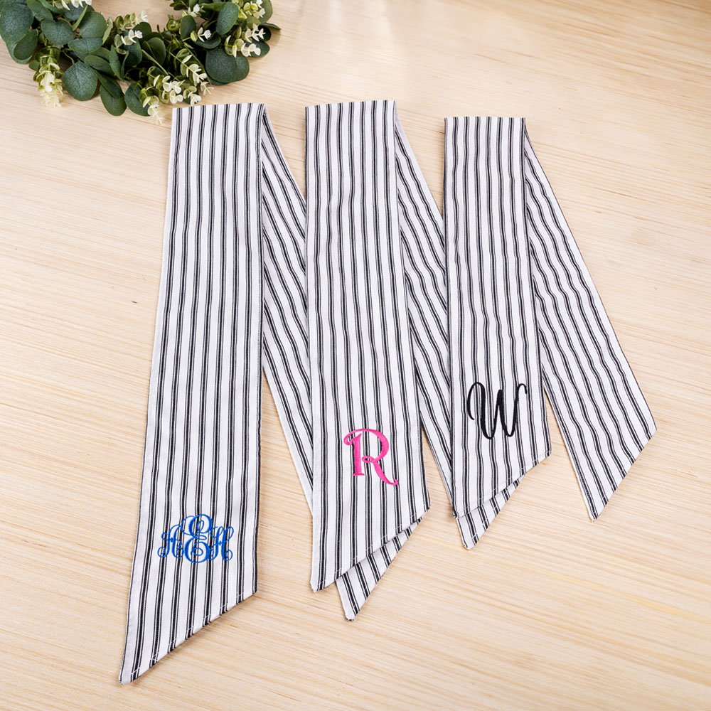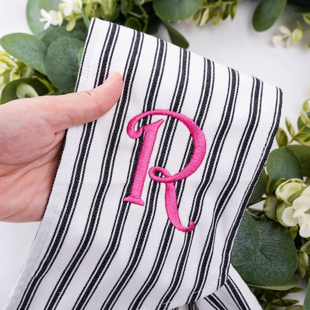 Choisissez parmi 25 couleurs de texte éclatantes et quatre styles de police élégants pour créer le monogramme ou l'initiale personnalisés parfaits. Grâce à une grande variété de combinaisons, vous pouvez adapter l'écharpe à vos goûts et à votre style.