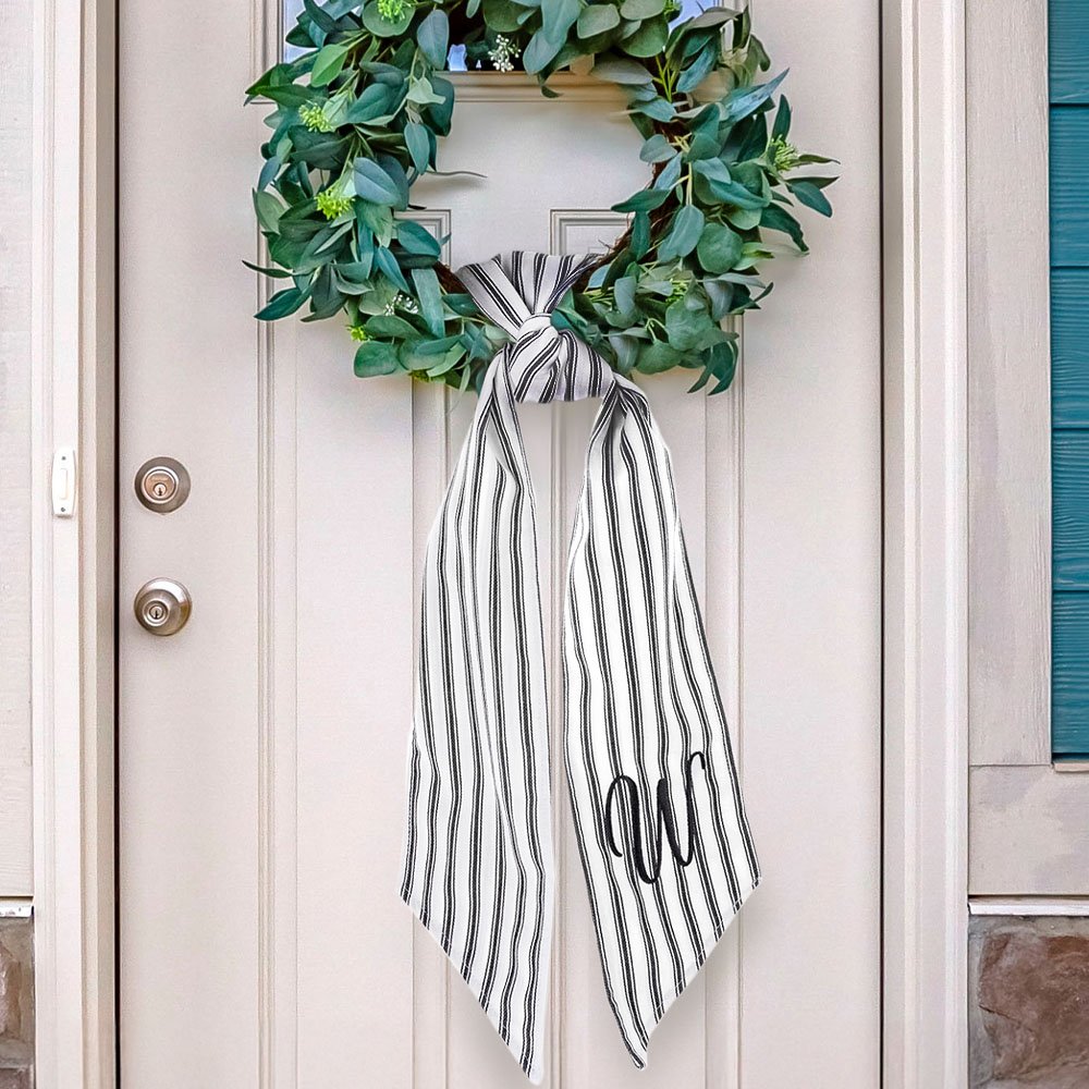 Cette écharpe est disponible en trois tailles pour répondre à vos besoins : 50 pouces, 54 pouces et 60 pouces. Qu'il s'agisse de décorer une petite ou une grande porte, le motif classique à rayures noires et blanches ajoute une touche intemporelle qui s'harmonise avec tous les espaces et tous les styles.