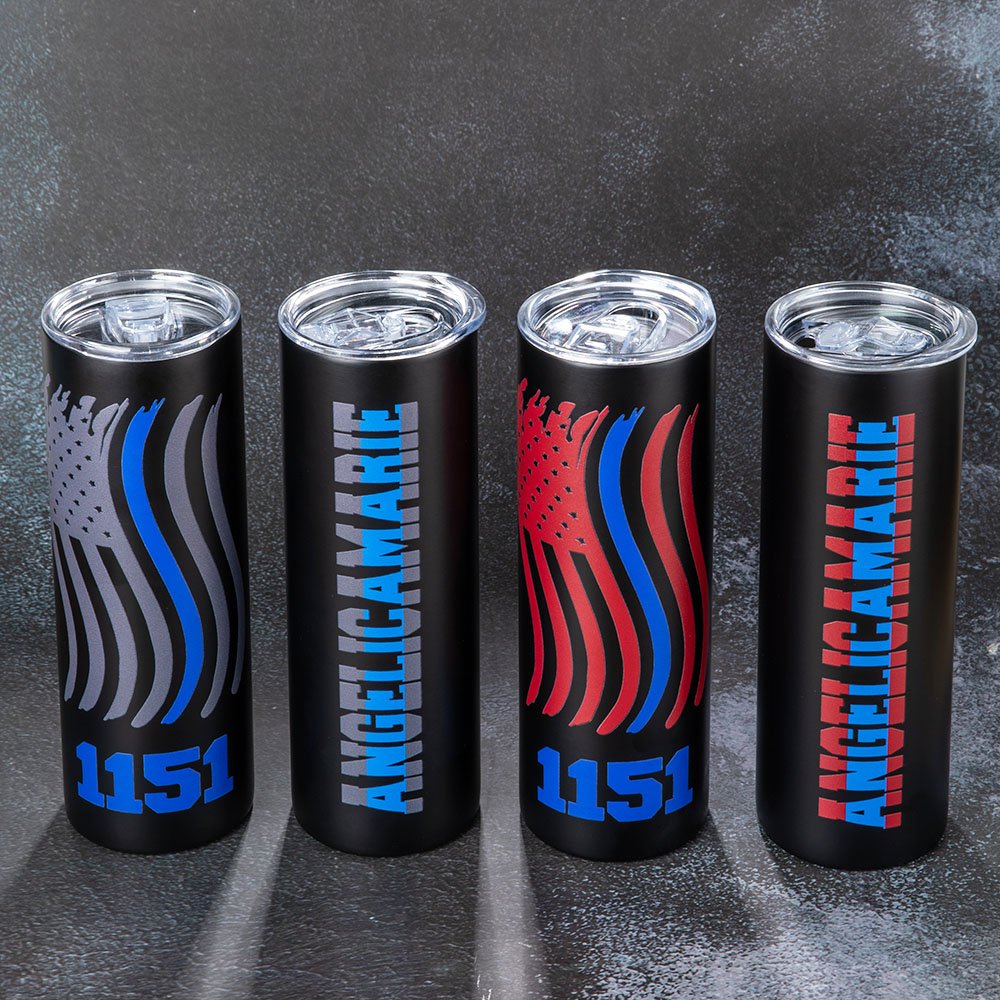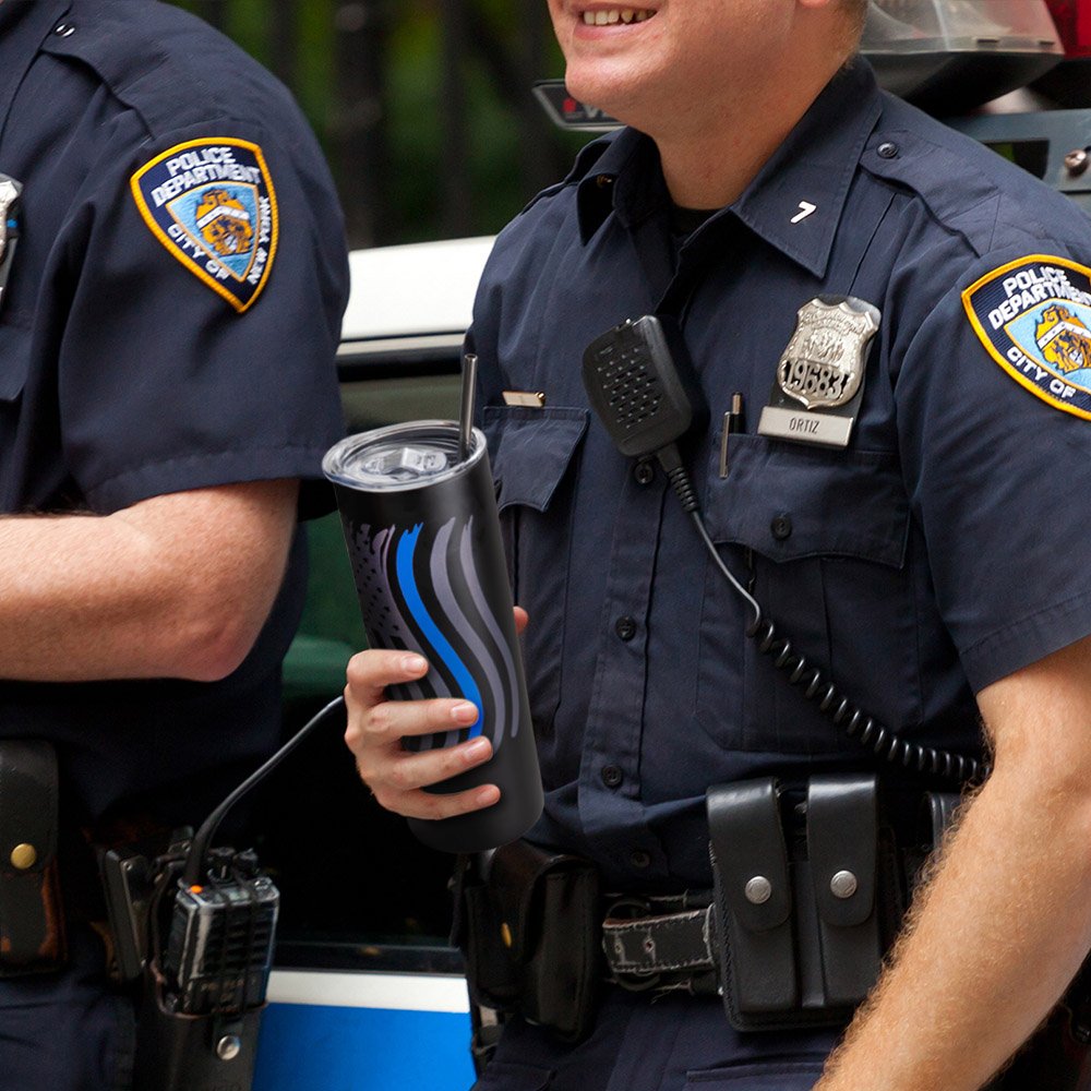 Le drapeau américain "thin blue line" dessiné sur le dessus de ce gobelet personnalisé en acier inoxydable est le cadeau idéal pour les officiers de police, les pompiers, la famille, les amis, les collègues et ceux qui sauvent des vies tous les jours. Il peut être personnalisé en ajoutant un nom et un numéro de badge de police. Que vous cherchiez un cadeau d'appréciation pour la police, un cadeau de retraite, une remise de diplôme ou une promotion, ce gobelet est un excellent choix.