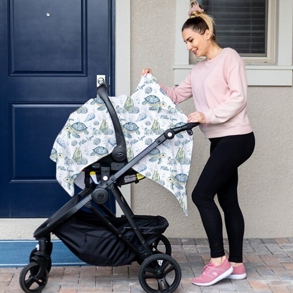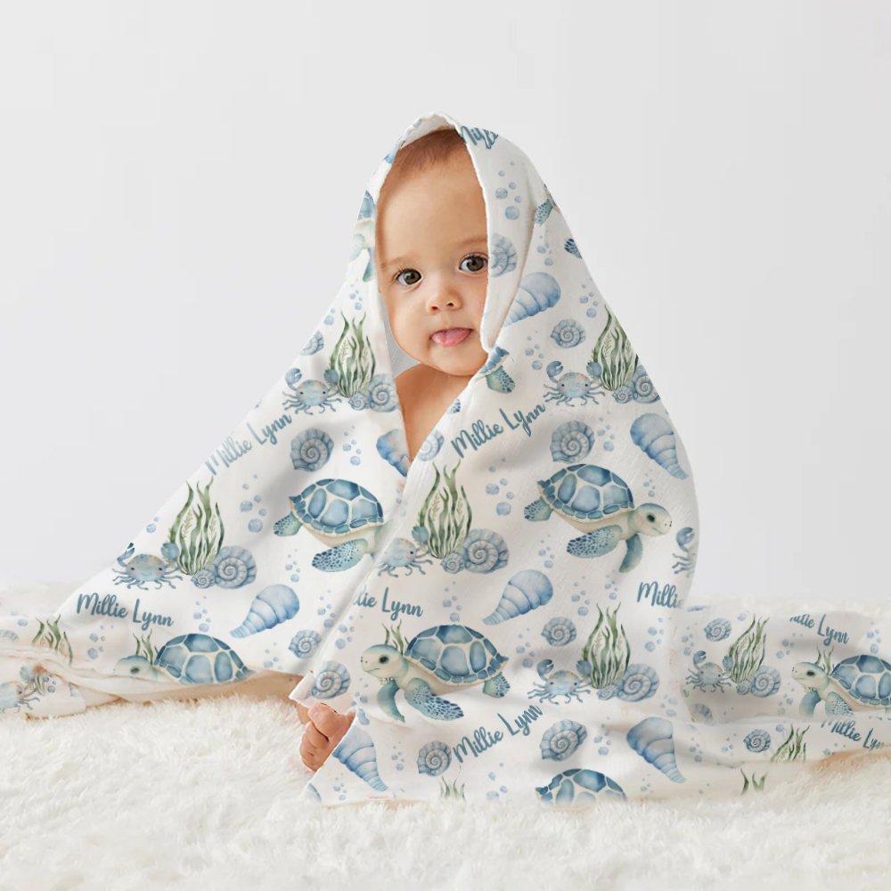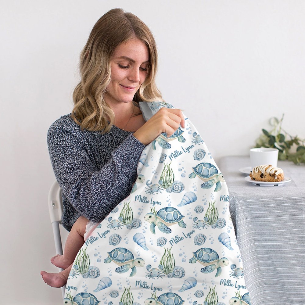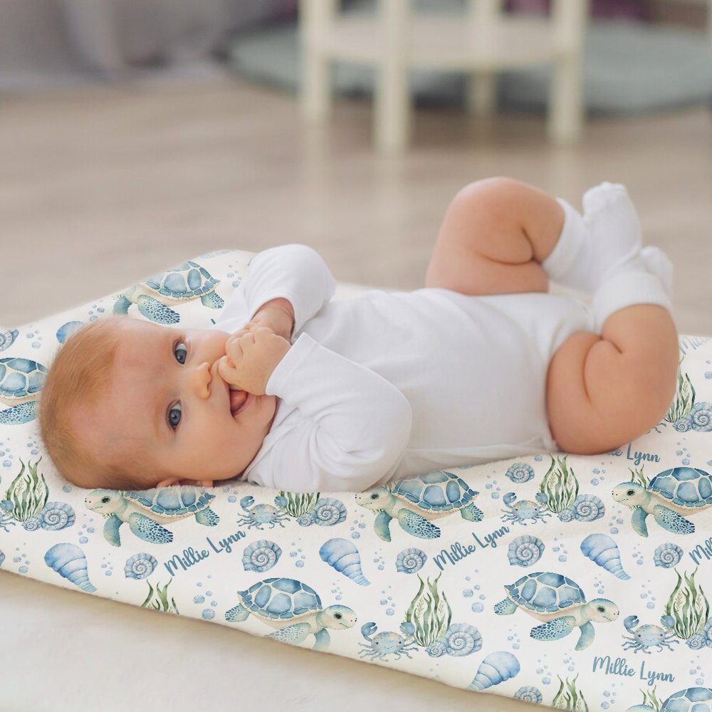 Le thème de notre couverture emmaillotée est le paradis bleu de l'océan, avec de jolies tortues, des conques, des algues et diverses créatures marines vivantes. Vous pouvez également personnaliser le nom du bébé pour ajouter un sentiment de chaleur, faisant de ce cadeau un souvenir précieux.