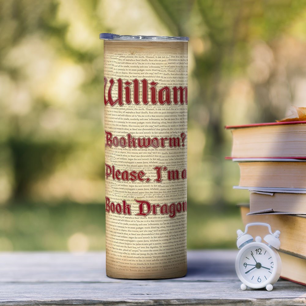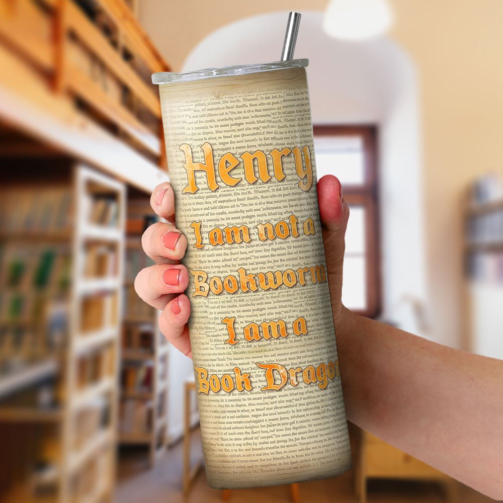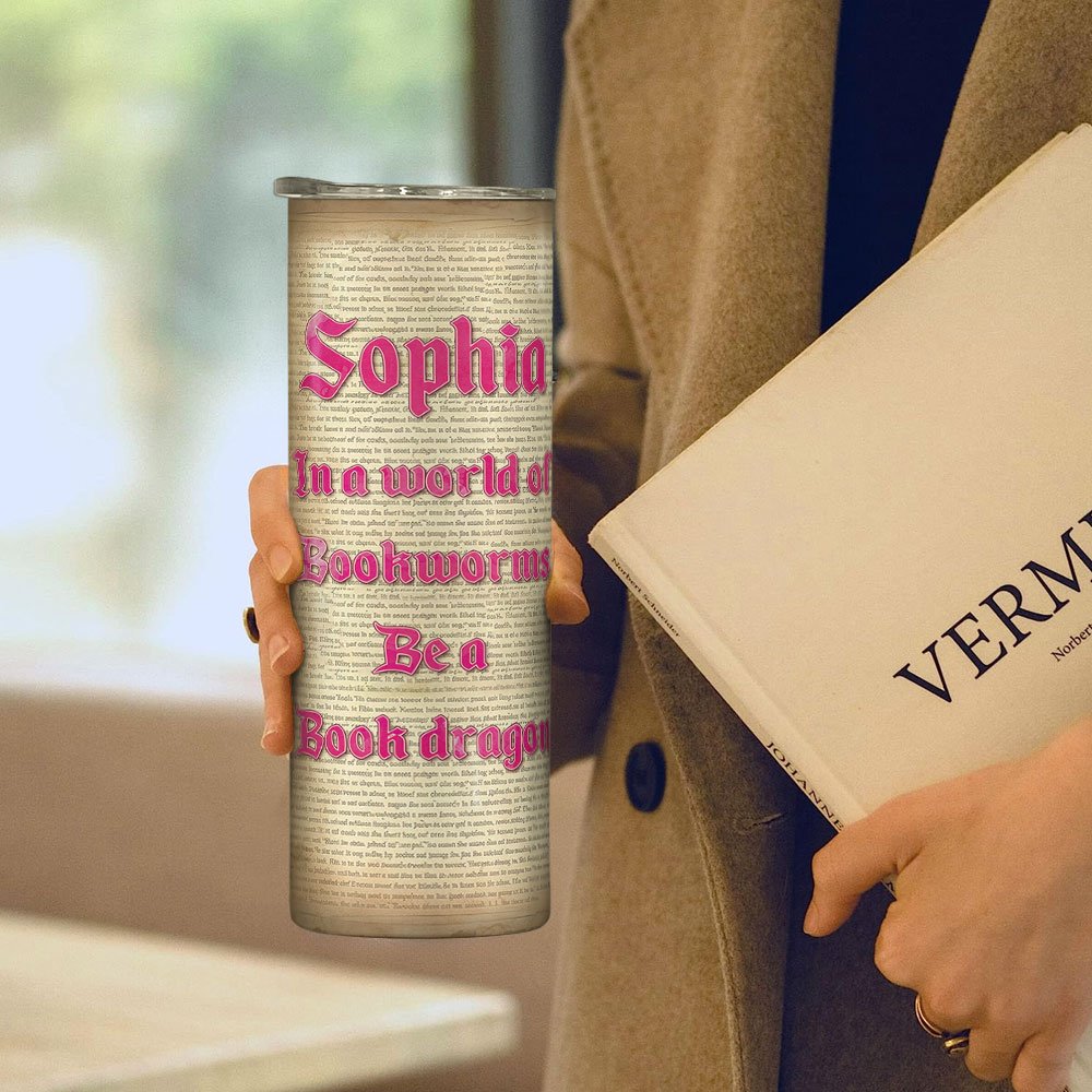 Livre Dragon Personnalisé 20oz Skinny Tumbler avec Couvercle Paille Brosse de Nettoyage Nom Tasse à Café Cadeau d'Anniversaire pour Lecteur Dragon Lov