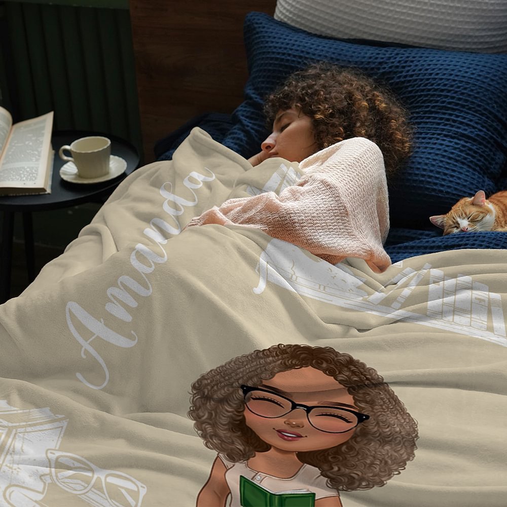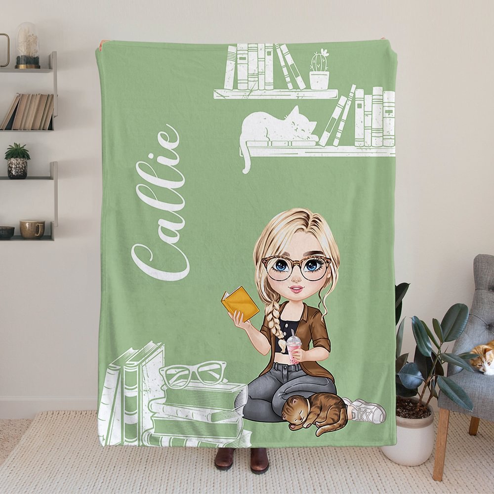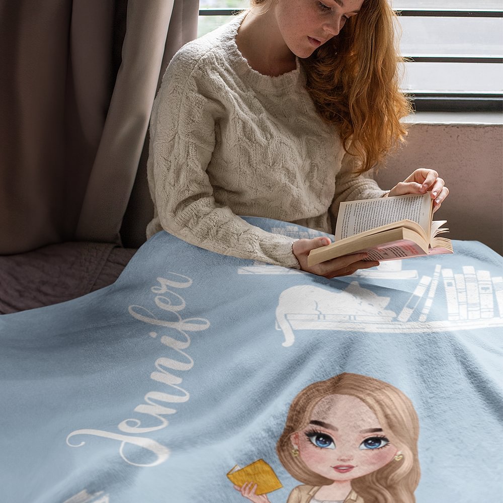 Cette couverture douillette et mignonne, remplie d'éléments sur le thème des livres, est le choix idéal pour les amoureux des livres. Elle représente des personnages de dessins animés tenant des livres et d'adorables chats. Vous pouvez personnaliser les poses et les tenues des personnages, et même ajouter votre propre nom à la couverture, pour en faire un objet unique et spécial, rien que pour vous.
