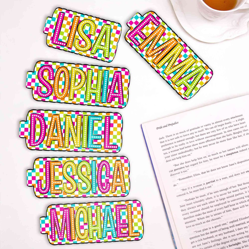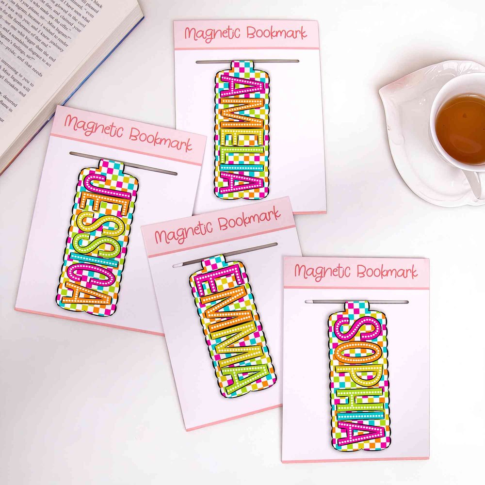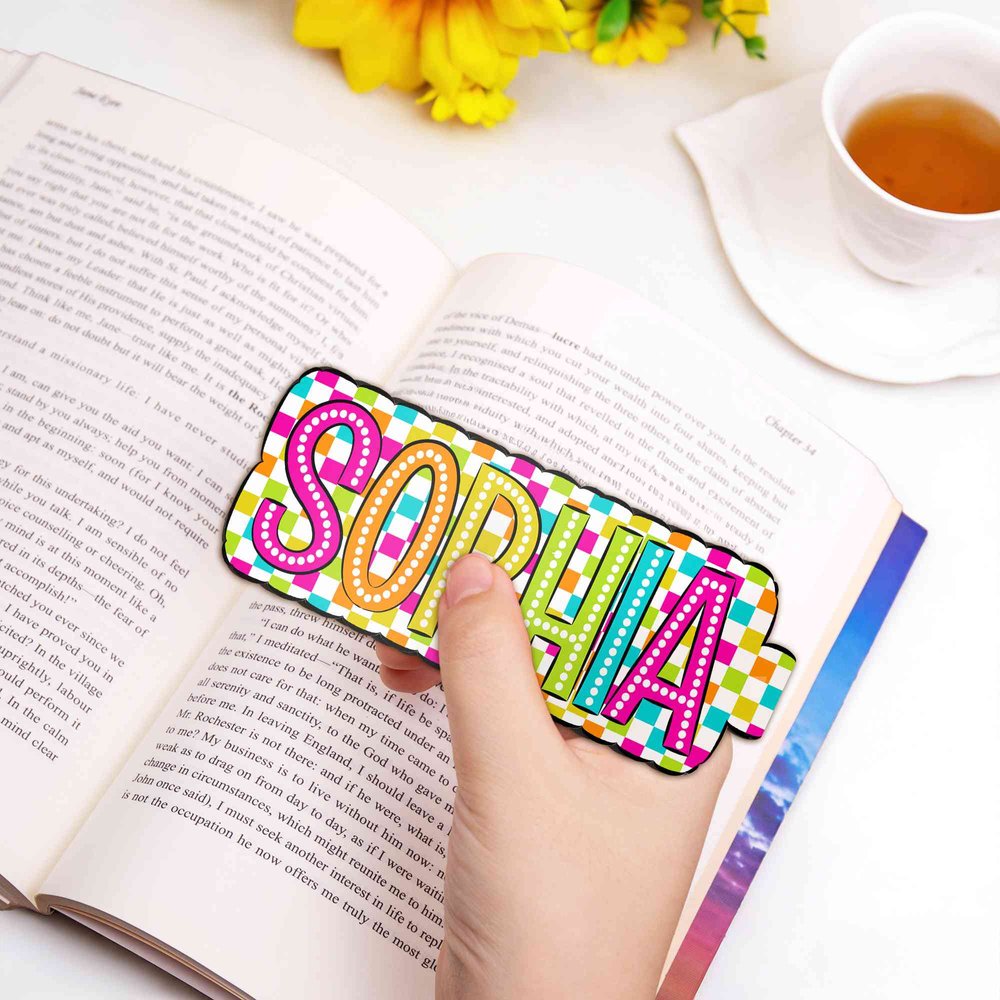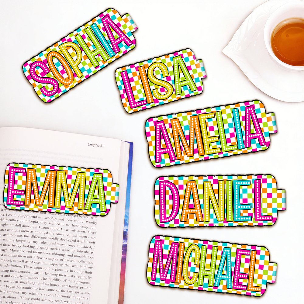Avec des motifs écossais aux couleurs vives associés à des lettres en relief, les couleurs à saturation élevée créent un look vibrant et accrocheur. Avec ses bords ondulés, chaque marque-page peut être personnalisé avec un nom personnel, ce qui en fait un objet unique. Dites adieu aux motifs ordinaires et transformez votre marque-page en une signature personnelle entre les pages.