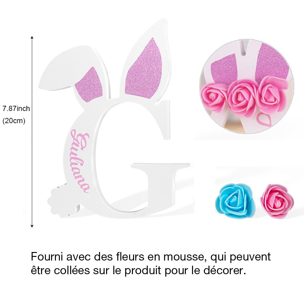 • Les lettres de lapin de Pâques autoportantes avec paillettes et détails floraux sont la décoration parfaite pour une chambre d'enfant, un manteau de cheminée ou une chambre de bébé. Pouvez personnaliser les étiquettes de nom et choisir votre couleur préférée ! Il y a deux couleurs à choisir. Un cadeau de Pâques parfait pour les enfants à mettre dans un panier de Pâques.