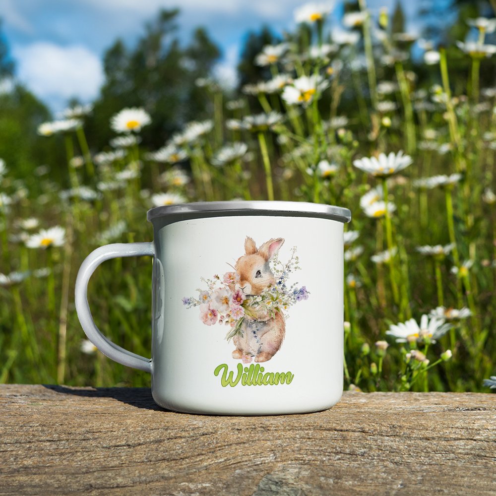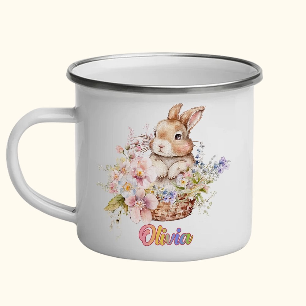 Tasse en Émail Personnalisée avec Nom Motif Lapin Cadeau Anniversaire Pâques pour Enfant