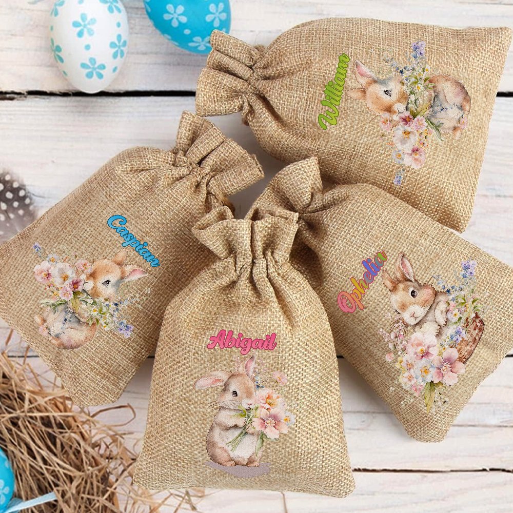 Il est parfait pour les sacs-cadeaux des fêtes de Pâques, les sacs de bonbons et les sacs à surprises, ainsi que pour les chasses aux œufs de Pâques. Il convient à tous les âges et peut être conservé comme souvenir. Répandez la joie et créez des souvenirs avec ce sac cadeau personnalisé.