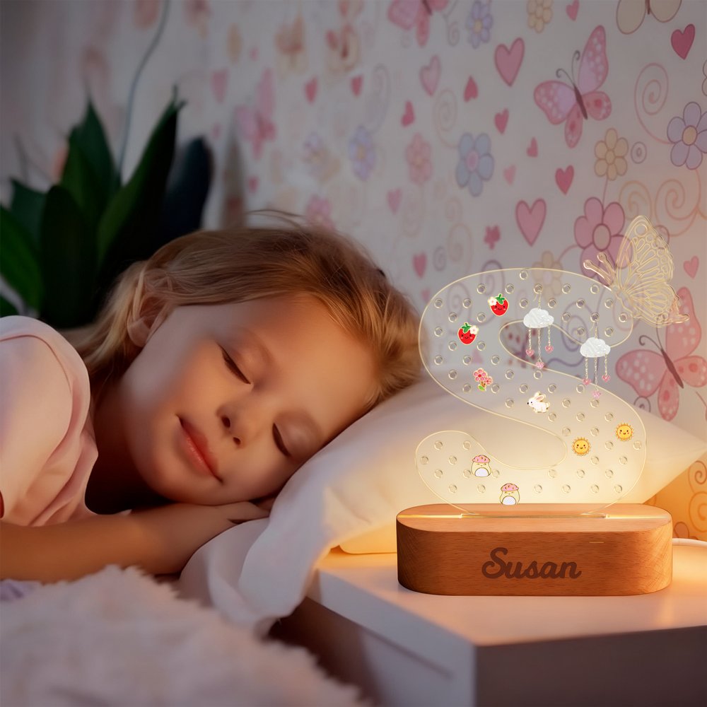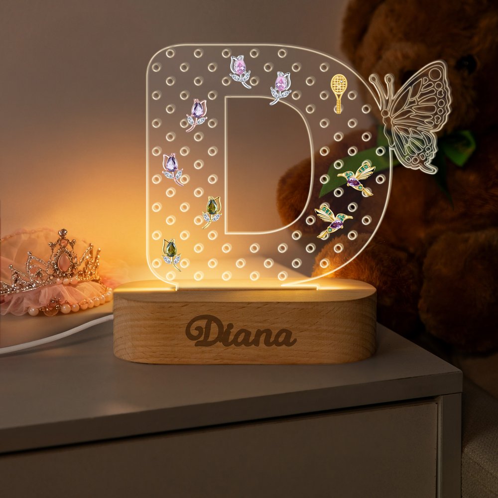 Vous pouvez choisir l'une des 26 lettres de l'alphabet et personnaliser la base avec un texte personnalisé. Le design présente un papillon fantaisiste, transformant le luminaire en une pièce unique qui reflète le style personnel - parfait pour tous ceux qui souhaitent un objet de décoration ou un cadeau unique.