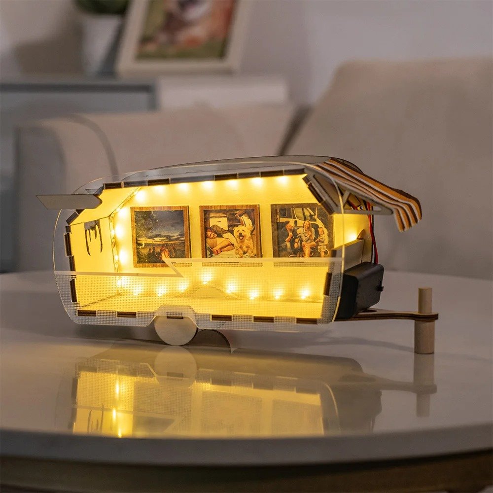 Il s'agit d'un cadre photo unique qui présente un mignon design de campeur et qui est décoré de petites bandes lumineuses chaleureuses. Vous pouvez télécharger 3 photos pour mettre vos souvenirs les plus précieux dans cet album afin de commémorer vos moments de camping et d'en faire un magnifique décor dans votre maison.