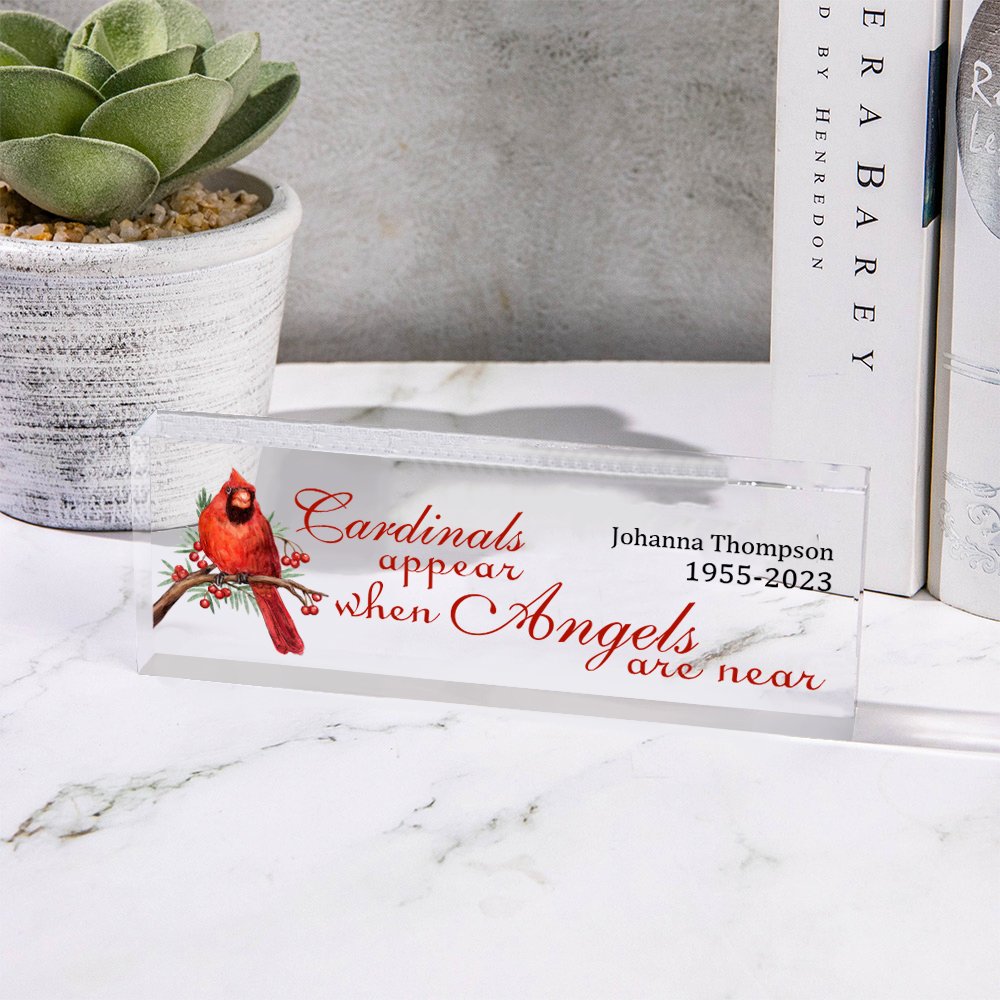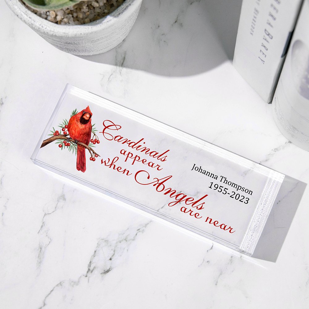 Méticuleusement fabriquée en acrylique de première qualité, cette plaque garantit fiabilité, sécurité et beauté durable. L'impression claire garantit que le message sincère reste lisible au fil du temps, et les couleurs vives, associées à des détails méticuleux, capturent l'essence du cardinal.