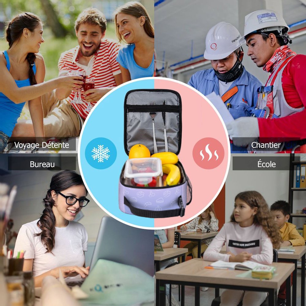Idéal pour transporter des aliments, des en-cas et des repas à l'école, au bureau, sur le lieu de travail, lors de pique-niques ou en voyage, ce sac brille par sa polyvalence. Sa poignée à boucle détachable permet de l'attacher facilement à n'importe quel sac à dos ou valise, ce qui en fait un sac à lunch idéal pour les voyages, afin que vous puissiez savourer des mets délicieux préparés à la maison à tout moment, n'importe où.