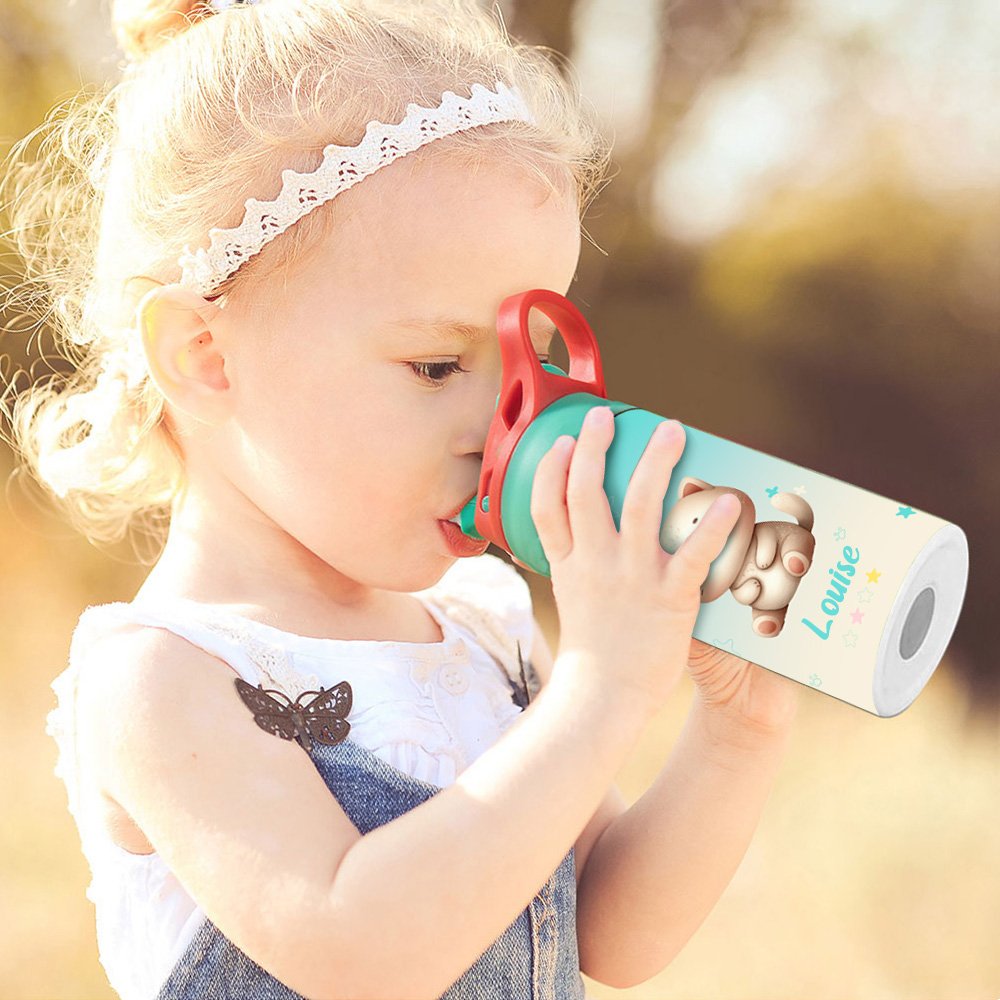 Fabriquée en acier inoxydable de première qualité, cette bouteille d'eau est respectueuse de l'environnement et de qualité alimentaire, ce qui garantit une consommation sûre et saine. Sa structure stable et robuste peut supporter une utilisation à long terme. En outre, elle est équipée d'une paille pratique qui se détache d'une légère pression, et l'embout buccal bien ajusté empêche les fuites. La conception de la base épaissie améliore la durabilité, ce qui la rend idéale pour une utilisation quotidienne par les enfants.