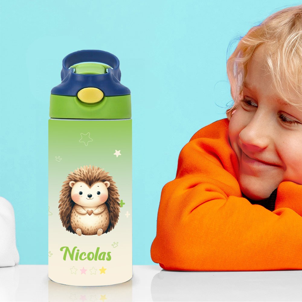 Cette bouteille d'eau présente 61 adorables animaux de dessins animés, dont des ours, des chatons et des lions, combinés à des éléments étoilés pour créer une atmosphère vivante et ludique. Avec 7 options de couleur de fond, dont le rose, le bleu, le vert et le jaune, les enfants peuvent choisir leur animal préféré et ajouter leur nom, créant ainsi une bouteille personnalisée qui rend chaque gorgée amusante et spéciale.