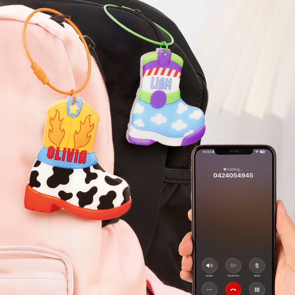 Vous pouvez choisir entre deux modèles de bottes vibrantes, saisir un nom, personnaliser la puce NFC avec un numéro de contact et créer des messages. La personnalisation transforme une étiquette pratique en un compagnon unique qui allie un design amusant à une identité personnelle - parfait pour les enfants qui souhaitent apporter une touche personnalisée à leur sac d'école ou à leurs clés.