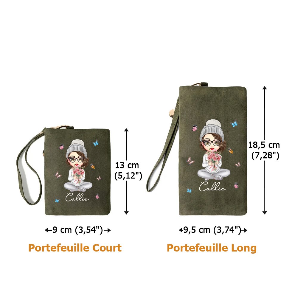 Le charmant design de ce portefeuille est accompagné d'un bouquet de fleurs de naissance et d'un nom personnalisé pour votre famille ou ami, ajoutant ainsi une valeur sentimentale à un accessoire élégant et pratique. Le portefeuille comporte plusieurs fentes pour cartes et une petite poche zippée, idéale pour les pièces de monnaie et autres objets essentiels.