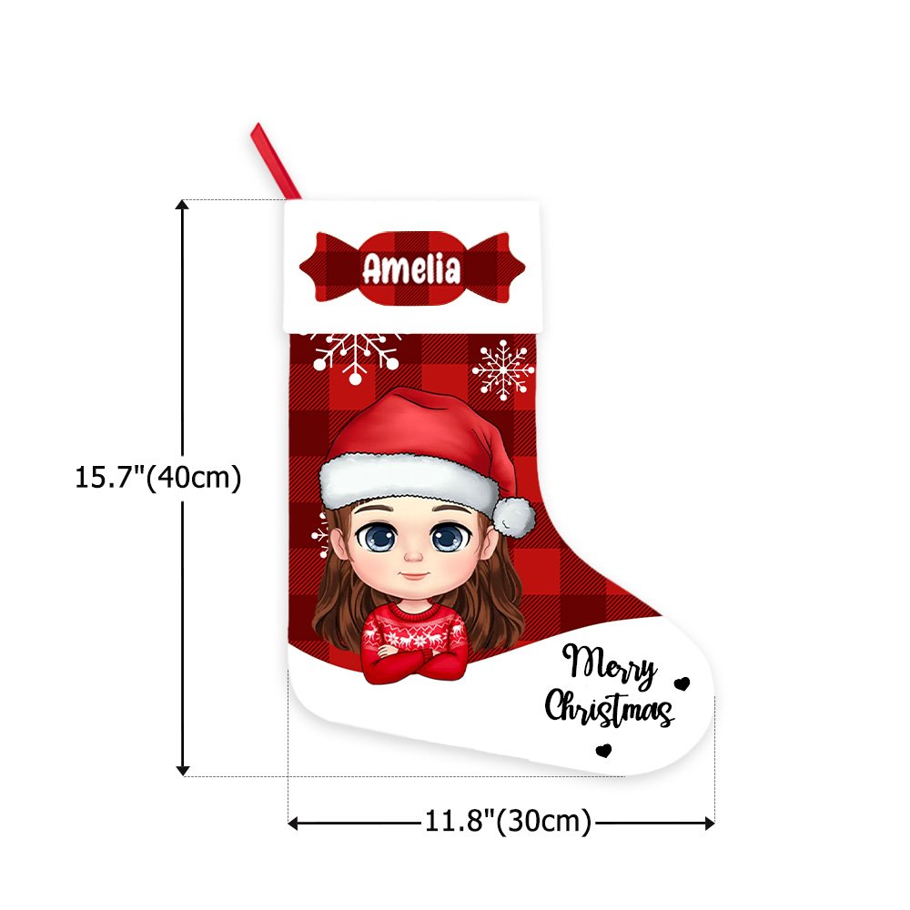 Conçue pour capturer l'esprit de fête, cette chaussette donne vie au charme de Noël grâce à son personnage de dessin animé personnalisé et à son nom. Il s'agit d'une décoration ludique et réconfortante qui non seulement rehausse l'aspect de votre maison pendant les fêtes, mais qui permet également à chaque membre de la famille de se sentir spécial grâce à sa chaussette personnalisée.