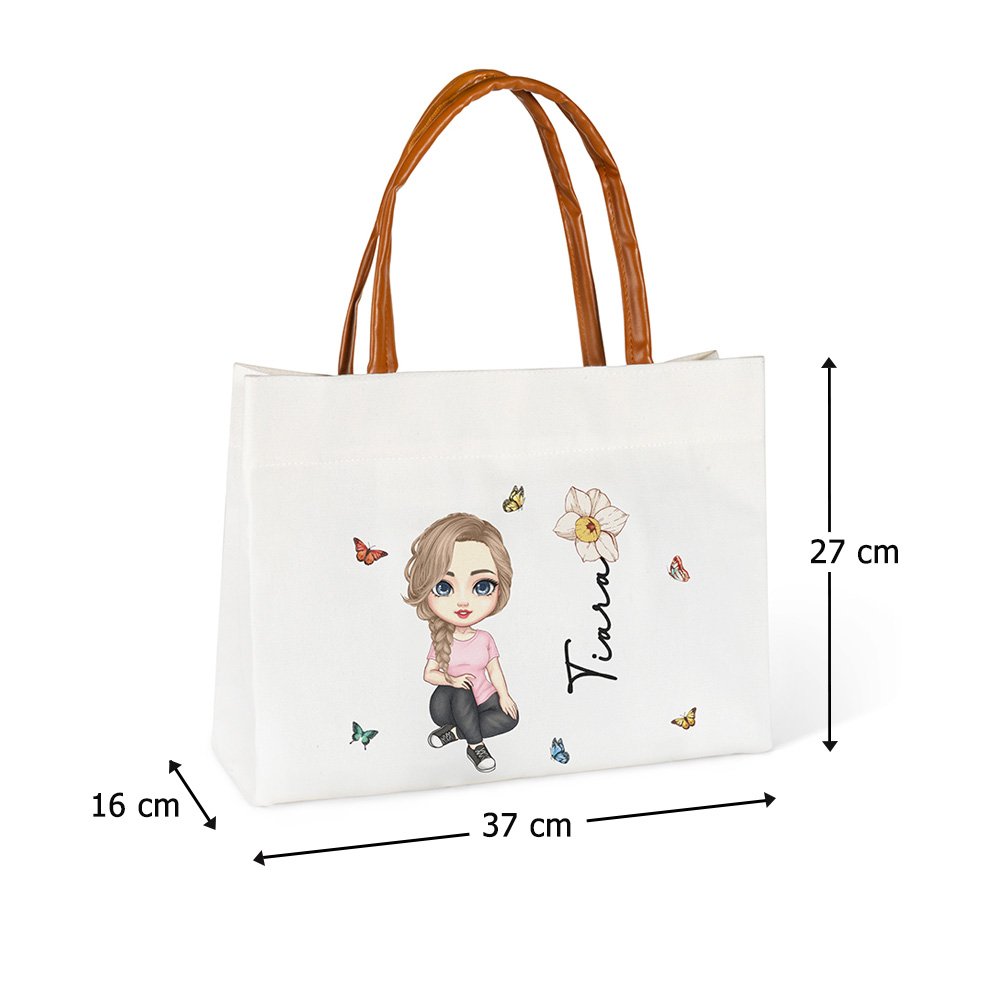 Ce ravissant sac à main en toile est orné d'un personnage de bande dessinée unique, associé à la fleur de naissance du mois correspondant. Vous pouvez le personnaliser avec un nom, le transformant ainsi en un cadeau unique et spécial.