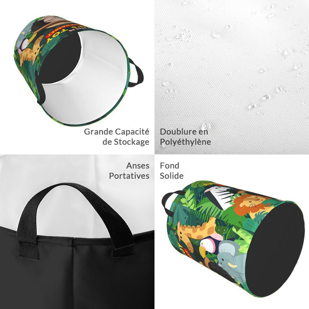 Ce panier de rangement pour jouets d'enfants à fond d'animaux de la forêt, avec des motifs d'animaux de dessins animés et un fond de plantes vertes rafraîchissantes, associé à un nom intéressant, crée non seulement un espace de rangement enfantin pour les enfants, mais stimule également l'imagination et la créativité de ces derniers. Il s'agit d'une solution de rangement de haute qualité pour les jouets des enfants.