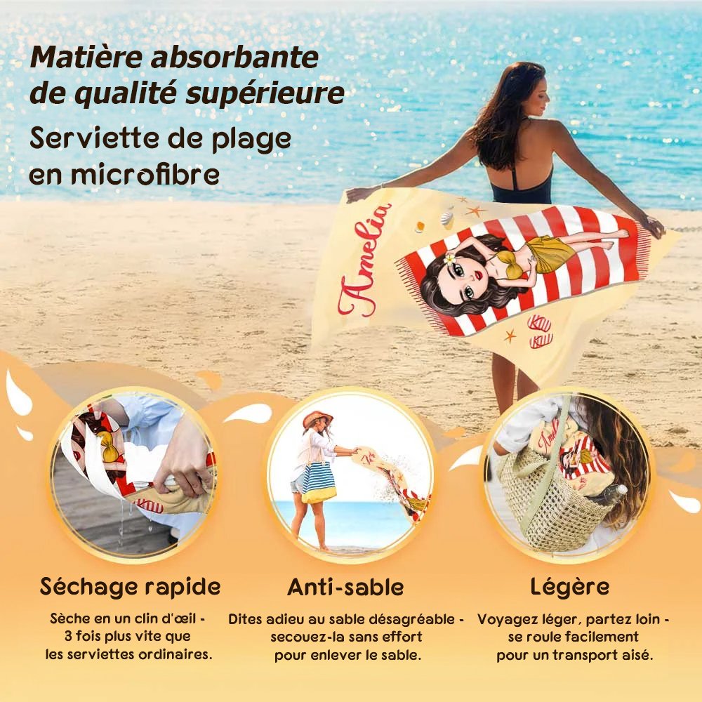 Notre serviette de plage surdimensionnée peut être imprimée avec un personnage de bande dessinée personnalisé et un nom, offrant quatre options de caractères ; une variété de styles - de mignon à à la mode - sont disponibles pour répondre aux besoins de personnalisation des fêtes, des groupes ou des individus, aidant à mettre en valeur la personnalité et facilitant l'identification et la photographie.