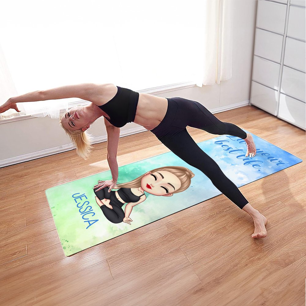 Vous pouvez le personnaliser en y ajoutant un nom et un dessin animé de yoga girl, avec des aquarelles lumineuses qui allient beauté naturelle et style personnel. Transformez votre tapis en un compagnon de fitness unique qui reflète votre individualité - parfait pour tous ceux qui veulent un accessoire de yoga unique en son genre.