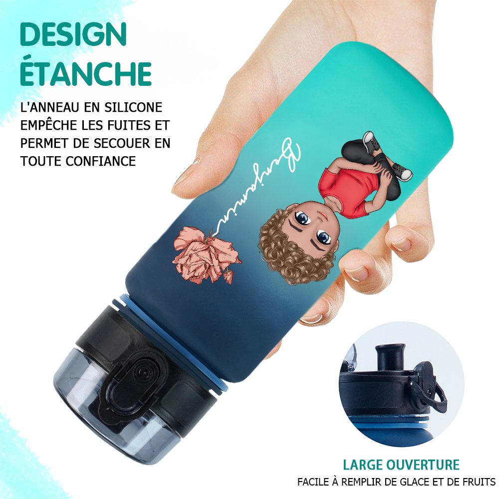 L'originalité de notre bouteille d'eau réside dans son design aux couleurs dégradées. Des personnages de dessins animés et des fleurs de naissance peuvent être dessinés selon l'image des personnages. Le nom du destinataire peut également être imprimé, de sorte que le destinataire puisse ressentir le caractère unique et exclusif de ce cadeau et renforcer le lien émotionnel entre les membres de la famille.