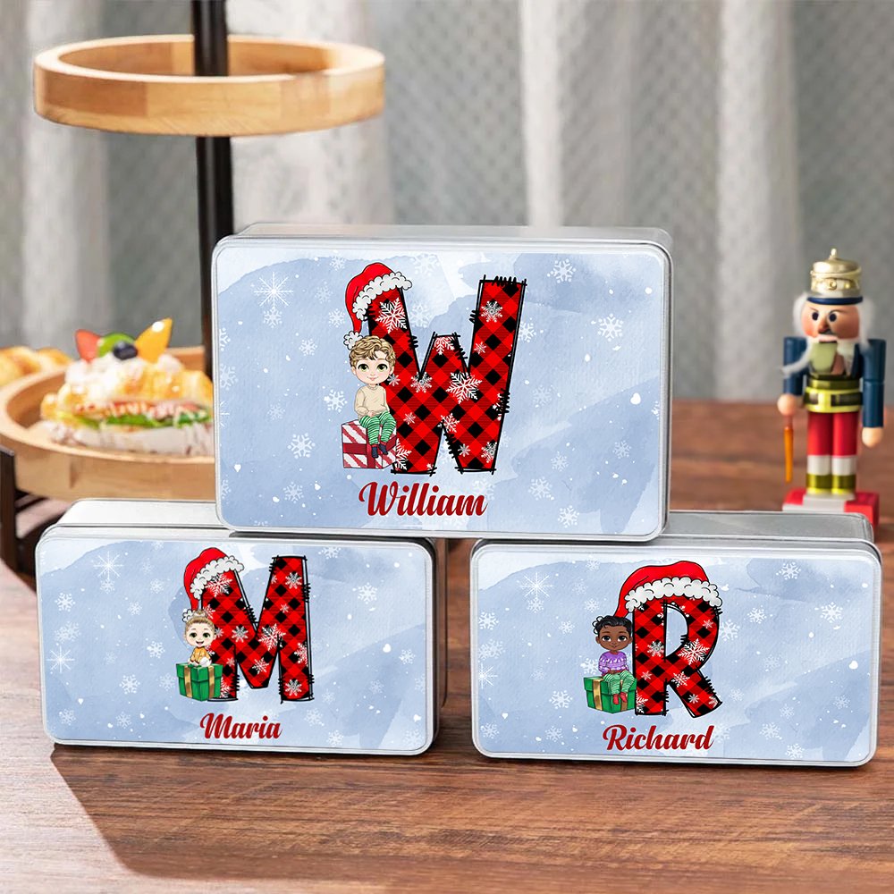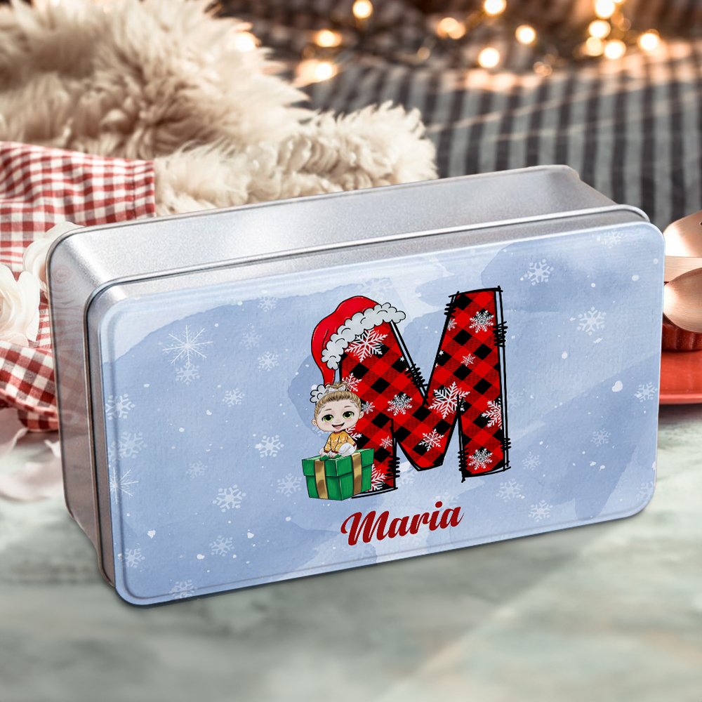 Cette boîte à biscuits présente des personnages de dessins animés personnalisables associés à des lettres de style Noël, ce qui fait très penser à Noël. Imprimez votre nom personnalisé dessus, ce qui rendra cette boîte à biscuits encore plus intime et chaleureuse.