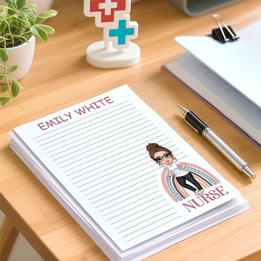 Inspiré par le dévouement des professionnels de la santé, ce bloc-notes présente un charmant design minimaliste qui peut être personnalisé avec un personnage de dessin animé de médecin ou d'infirmière sur un fond arc-en-ciel vibrant. Personnalisez-le en y ajoutant votre nom et votre profession pour qu'il se démarque vraiment, en mettant en valeur votre professionnalisme et votre personnalité unique dans un seul et même accessoire qui attire l'attention.