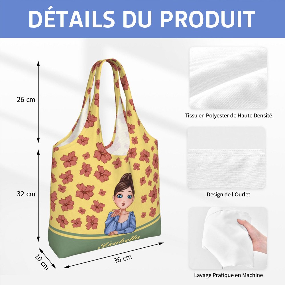Ce sac présente un charmant motif centré sur une fille de bande dessinée et des fleurs de naissance, créant ainsi une atmosphère romantique. Chaque fleur de naissance représente des émotions et des significations différentes, ce qui vous permet d'exprimer votre individualité et votre charme. Vous pouvez personnaliser l'image de la fille, les fleurs, la couleur du sac et votre nom, ce qui fait de chaque sac un objet de mode unique.