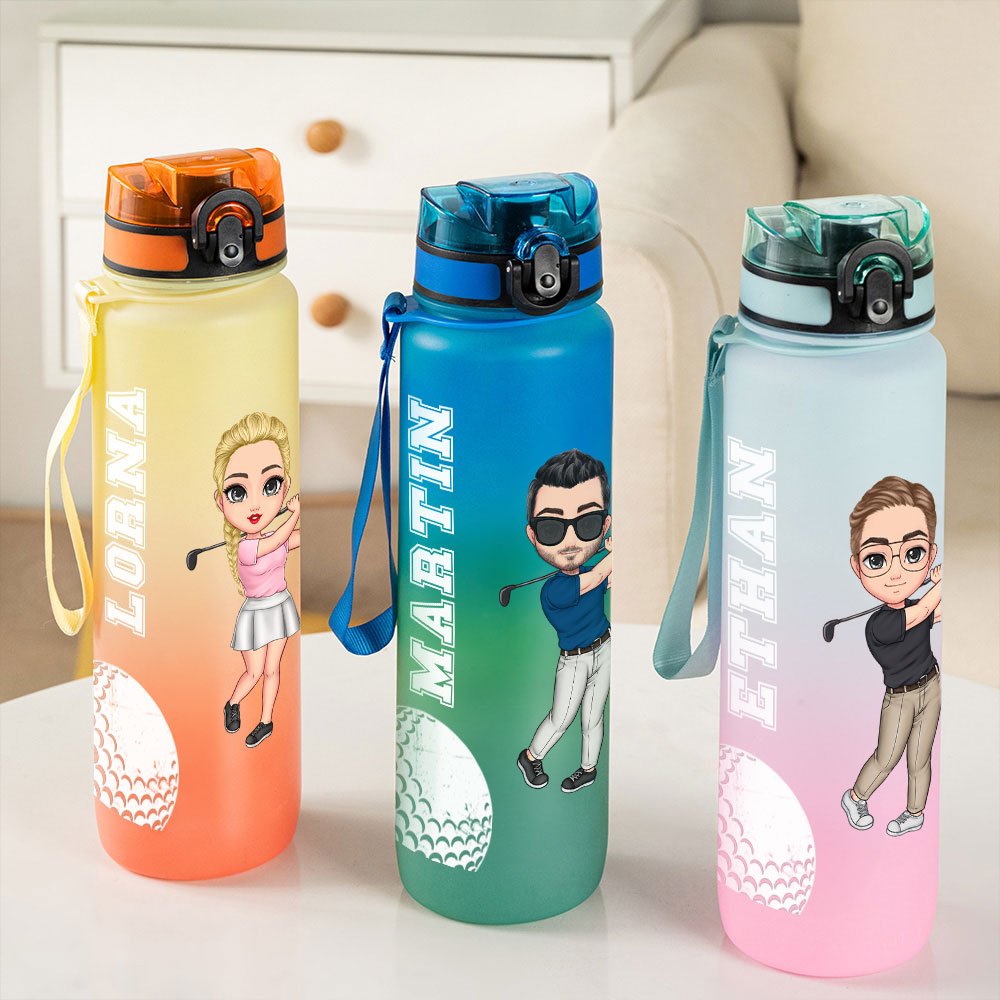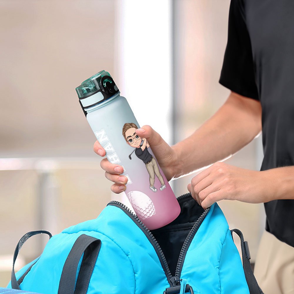 Cette bouteille d'eau sportive est conçue spécialement pour les amateurs de golf, avec une capacité de 32 oz pour répondre aux besoins d'hydratation. Personnalisez-la avec un personnage de bande dessinée unique jouant au golf et un nom, pour mettre en valeur votre personnalité et votre amour du golf.