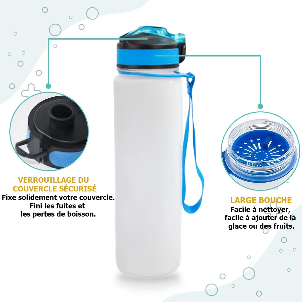 Fabriquée en plastique AS durable, cette bouteille d'eau est à la fois légère et solide, ce qui garantit une utilisation durable. Le matériel est sans BPA et sûr, exempt de produits chimiques et d'odeurs nocives, ce qui le rend adapté aux enfants et aux adultes.